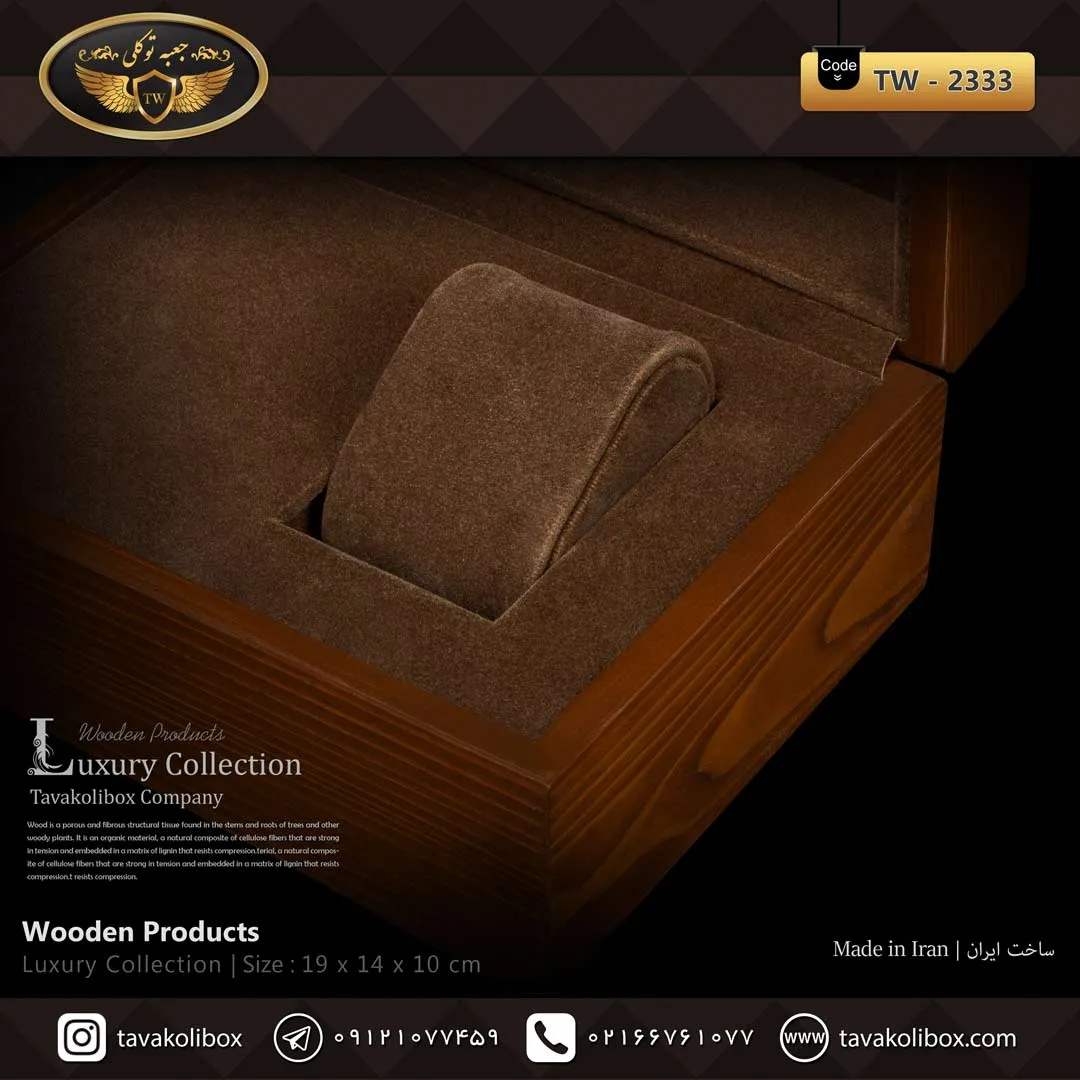جعبه ساعت 1 خونه لوکس درب دار بالشتک لوکس چوب طبیعی رنگ قهوه ای مدل : TW-2333