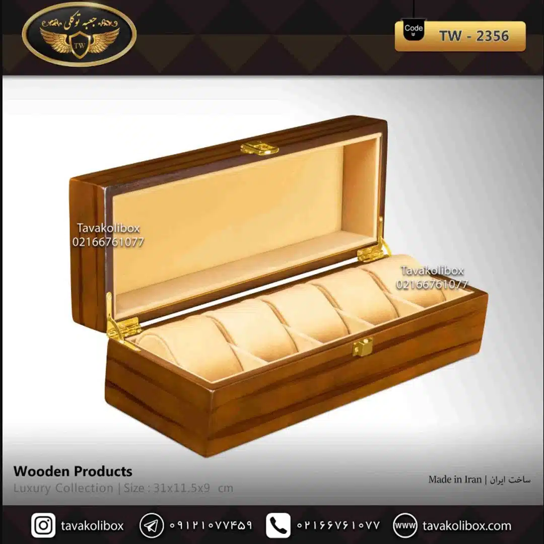 جعبه ساعت 5 خونه درب دار بالشتک لوکس رنگ قهوه ای مدل : TW-2356