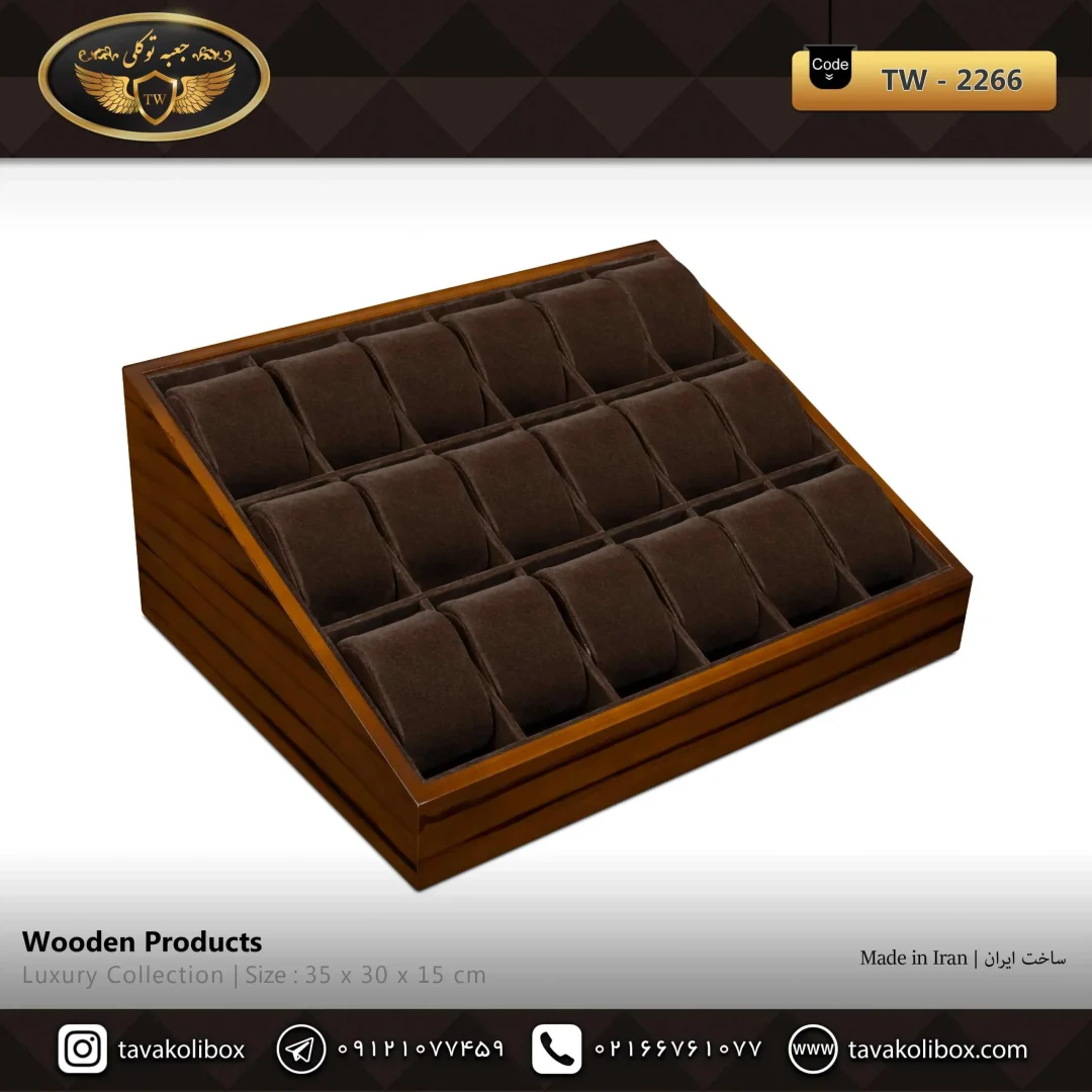 استند ساعت 18 خونه بالشتک لوکس شیبدار رنگ قهوه ای مدل : TW-2266