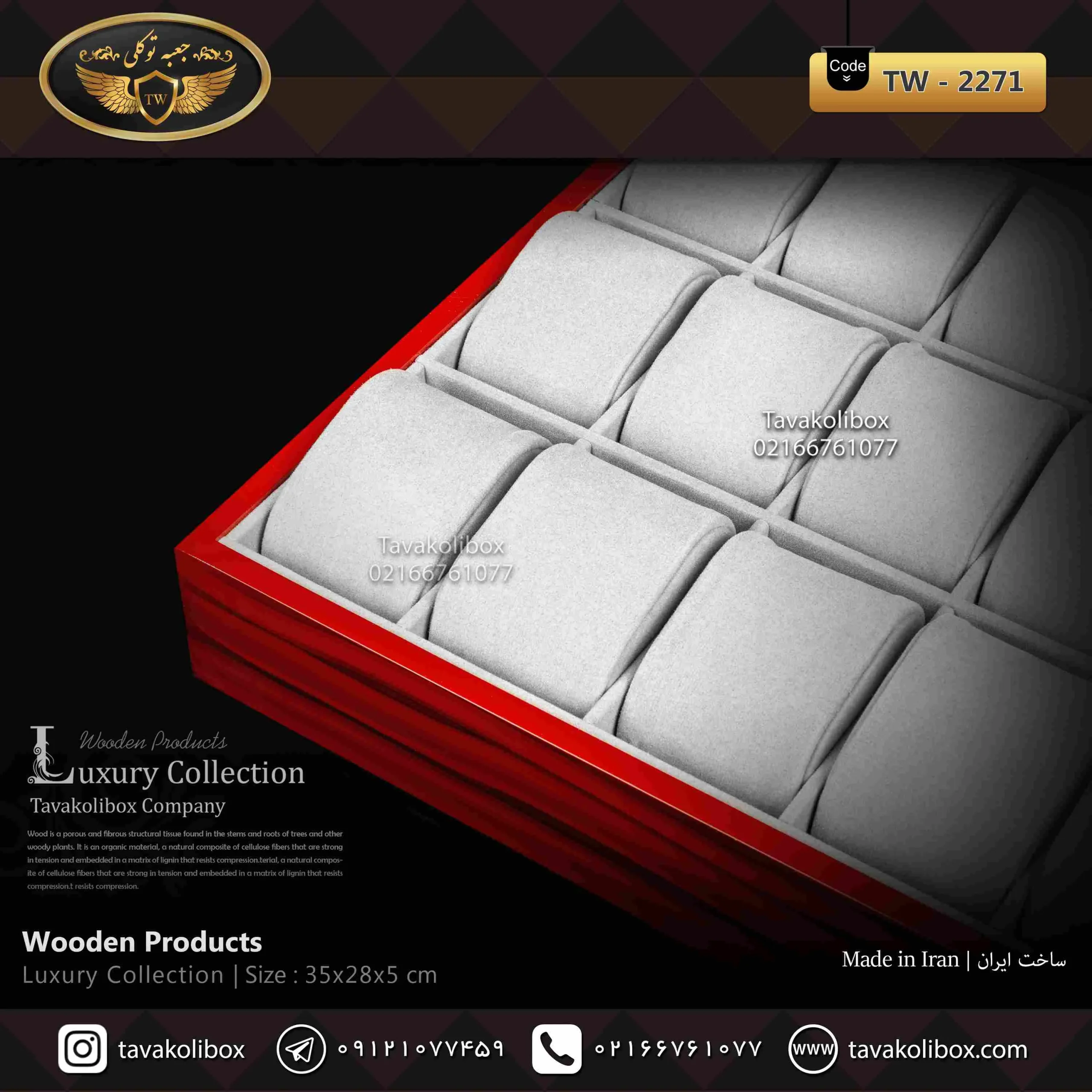 این استند باشکوه، با بدنهای از جنس MDF و روکش آلبالویی جذاب، جلوهای از لوکس بودن را به نمایش میگذارد. هر یک از 18 فضای داخلی، مجهز به بالشتکهایی از جنس جیر نرم و لطیف است که نه تنها زیبایی بصری خیرهکنندهای به استند میبخشد، بلکه از ساعتهای ارزشمند شما در برابر خط و خش محافظت کرده و جایگاهی امن برای آنها فراهم میکند. مدل TW-2271، یک انتخاب ایدهآل برای کلکسیونرهایی است که به دنبال بهترینها برای نمایش و نگهداری مجموعهی نفیس خود هستند. زیبایی، کیفیت و نظم در این استند گرد هم آمدهاند