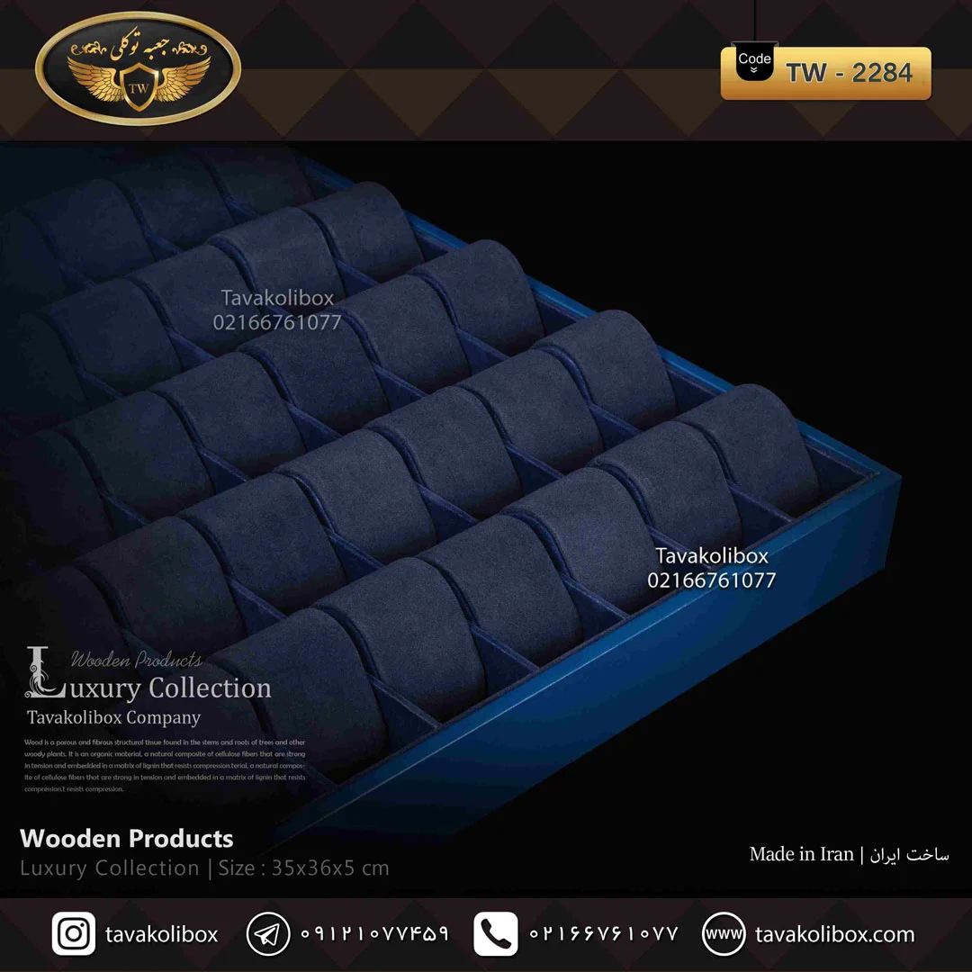 استند ساعت 40 خونه رنگ سورمه ای مدل : TW-2284 از متریال مرغوب ساخته شده است و برای نمایش و نگهداری انواع ساعت به کار میرود.