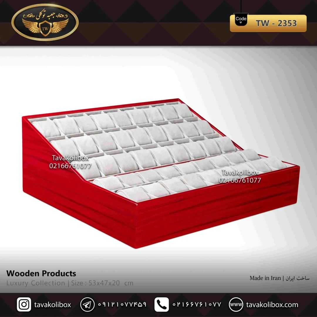 این استند ساعت با ظرفیت فوقالعاده 45 خانه، راهحلی ایدهآل برای کلکسیونرهای بزرگ است تا تمامی ساعتهای خود را به شیوهای باشکوه و منظم به نمایش بگذارند. هر خانه با بالشتکهای لوکس و نرم، محافظتی بینظیر را برای ساعتهای شما فراهم میکند. رنگ قرمز جذاب این استند، جلوهای از شور و هیجان را به نمایش ساعتهای شما اضافه میکند. مدل TW-2353، ترکیبی از کارایی، زیبایی و لوکس بودن برای یک کلکسیون وسیع است