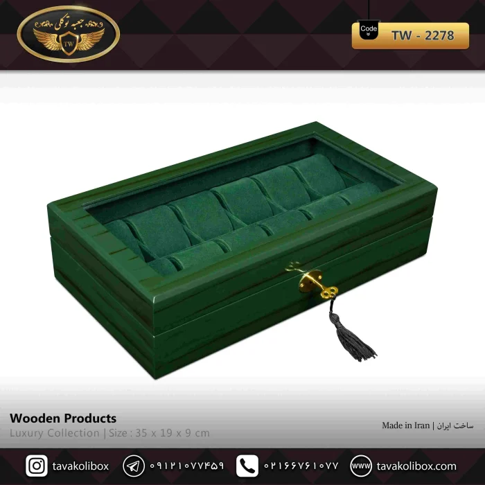 جعبه ساعت لوکس 12 خونه کلیددار بالشتک لوکس رنگ سبز مدل : TW-2278
