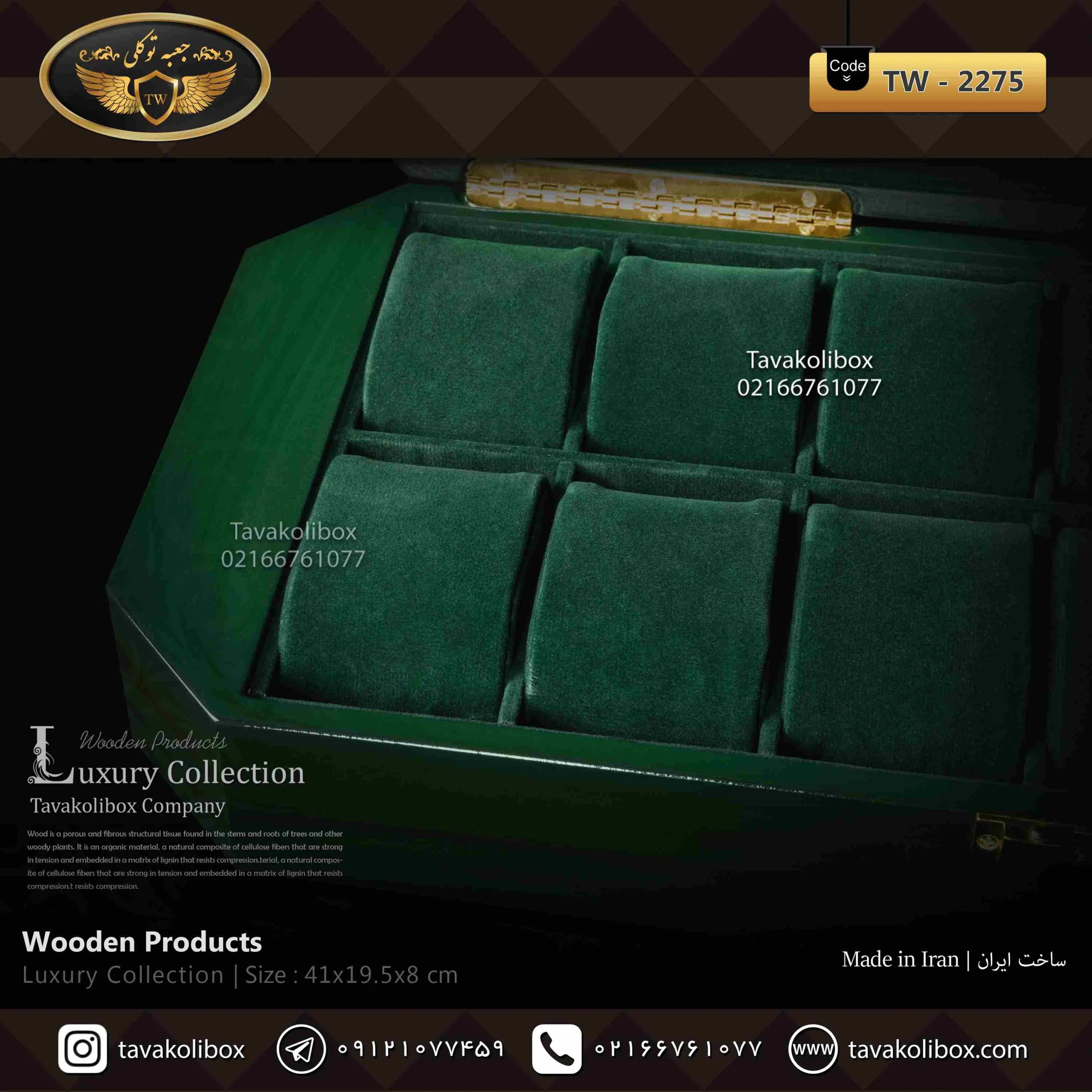 جعبه ساعت 12 خونه لوکس 8 ضلعی بالشتک لوکس رنگ سبز مدل : TW-2275