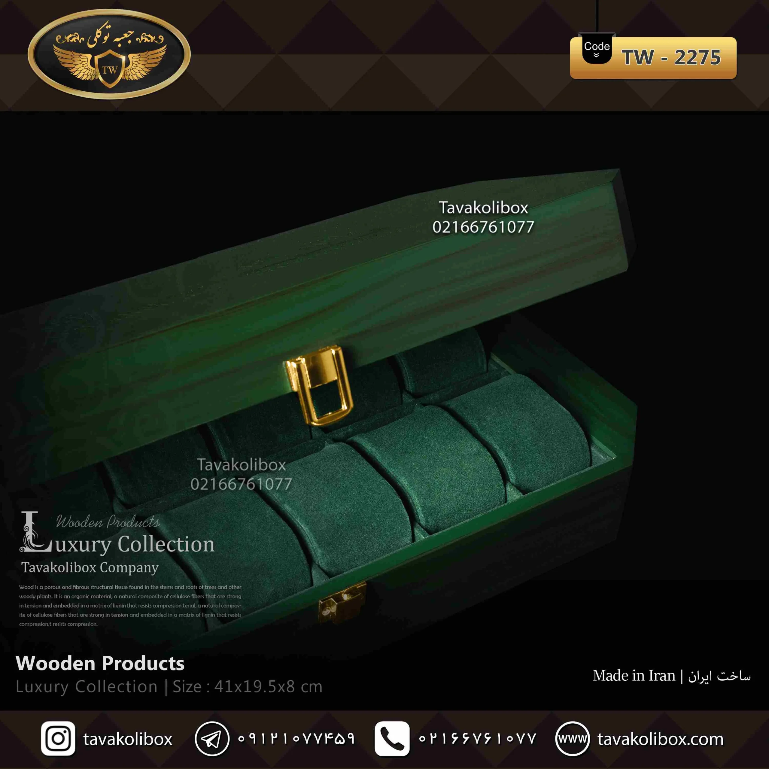 جعبه ساعت 2 خونه ایستاده کلیددار -کشودار بالشتک لوکس رنگ سبز یشمی مدل : TW-2488