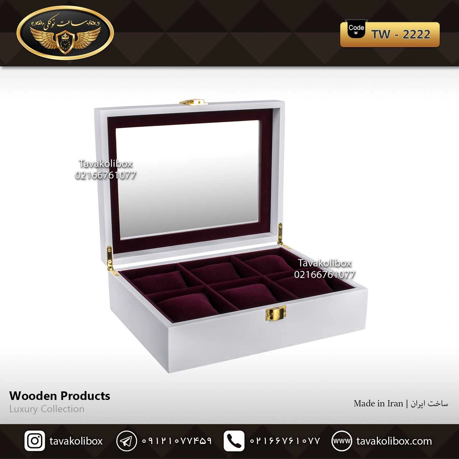 جعبه ساعت 6 خونه درب دار بالشتک معمولی رنگ سفید مدل : TW-2222