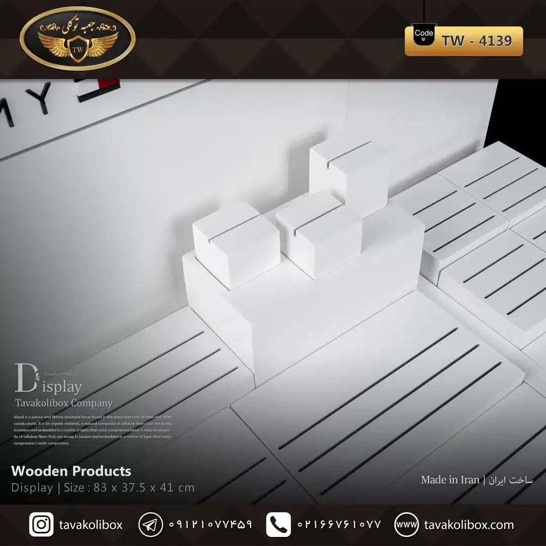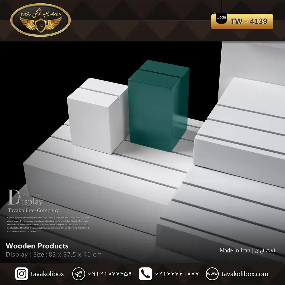 دیسپلی ساعت لوکس مدل 4139 با ترکیب رنگ سفید–سبز، یک پایهی نمایشی شیک و حرفهای برای نمایش ساعتهای مچی است که زیبایی و کیفیت ساخت بالایی دارد.