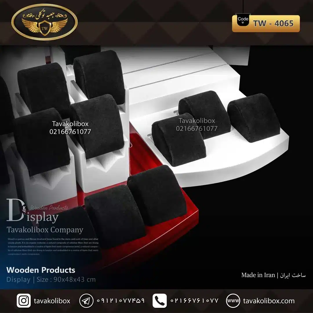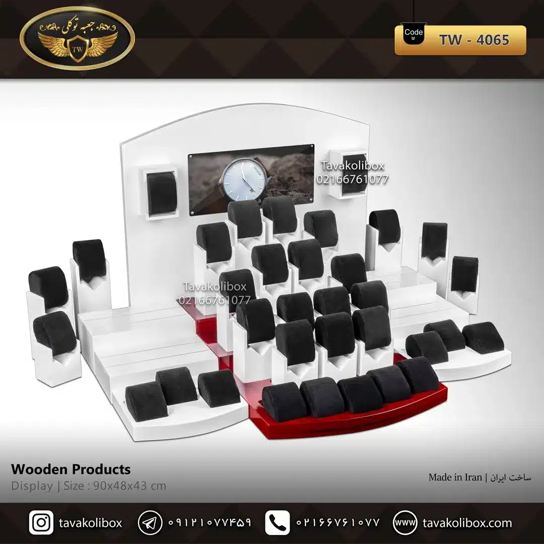 دیسپلی ساعت لوکس رنگ سفید-قرمز مدل : 4065 از متریال مرغوب ساخته شده است و برای نمایش و نگهداری انواع ساعت به کار میرود.