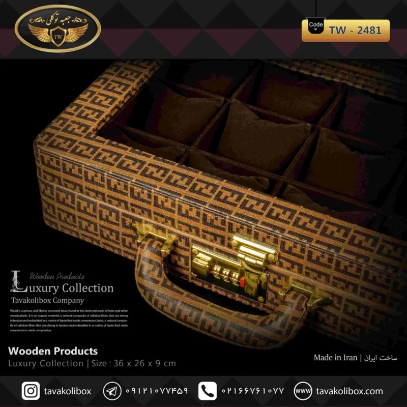 جعبه ساعت 12 خانه سوپرلاکچری مدل TW-2481، همراهی ایدهآل برای مجموعهداران حرفهای. این جعبه با چرم قهوهای روشن دلنشین و طراحی 12 خانهی جادار، مکانی امن و بسیار شیک برای نگهداری ساعتهای ارزشمند شماست. درب آن به خوبی از ساعتهایتان محافظت میکند و بالشتکهای داخلی، هر ساعت را در جای خود ثابت نگه میدارند. اگر به دنبال جلوهای لوکس و منظم برای ساعتهایتان هستید، این جعبه با رنگ قهوهای روشن و کیفیت ساخت بالا، انتخابی فوقالعاده خواهد بود. TW-2481، تجسمی از زیبایی، نظم و مراقبت حرفهای از ساعتهای شما