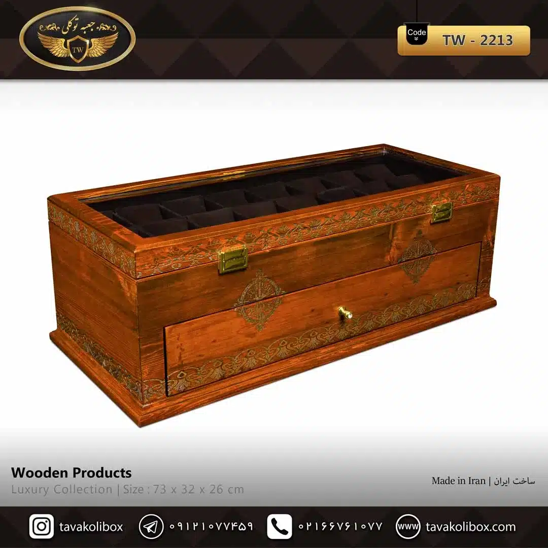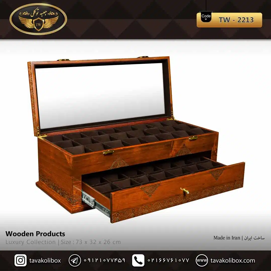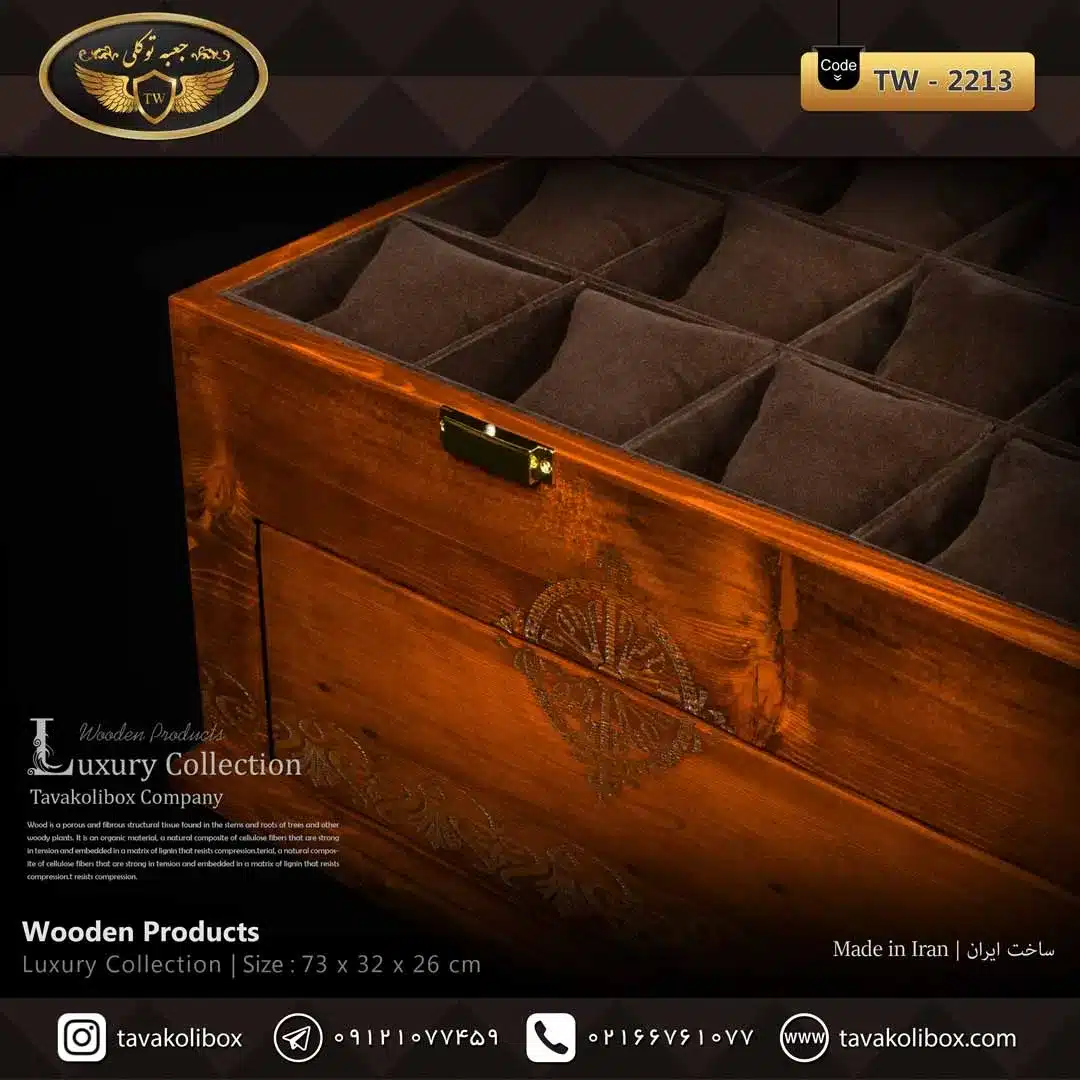 جعبه ساعت 45 خونه چوب طبیعی رنگ قهوه ای مدل : TW-2213