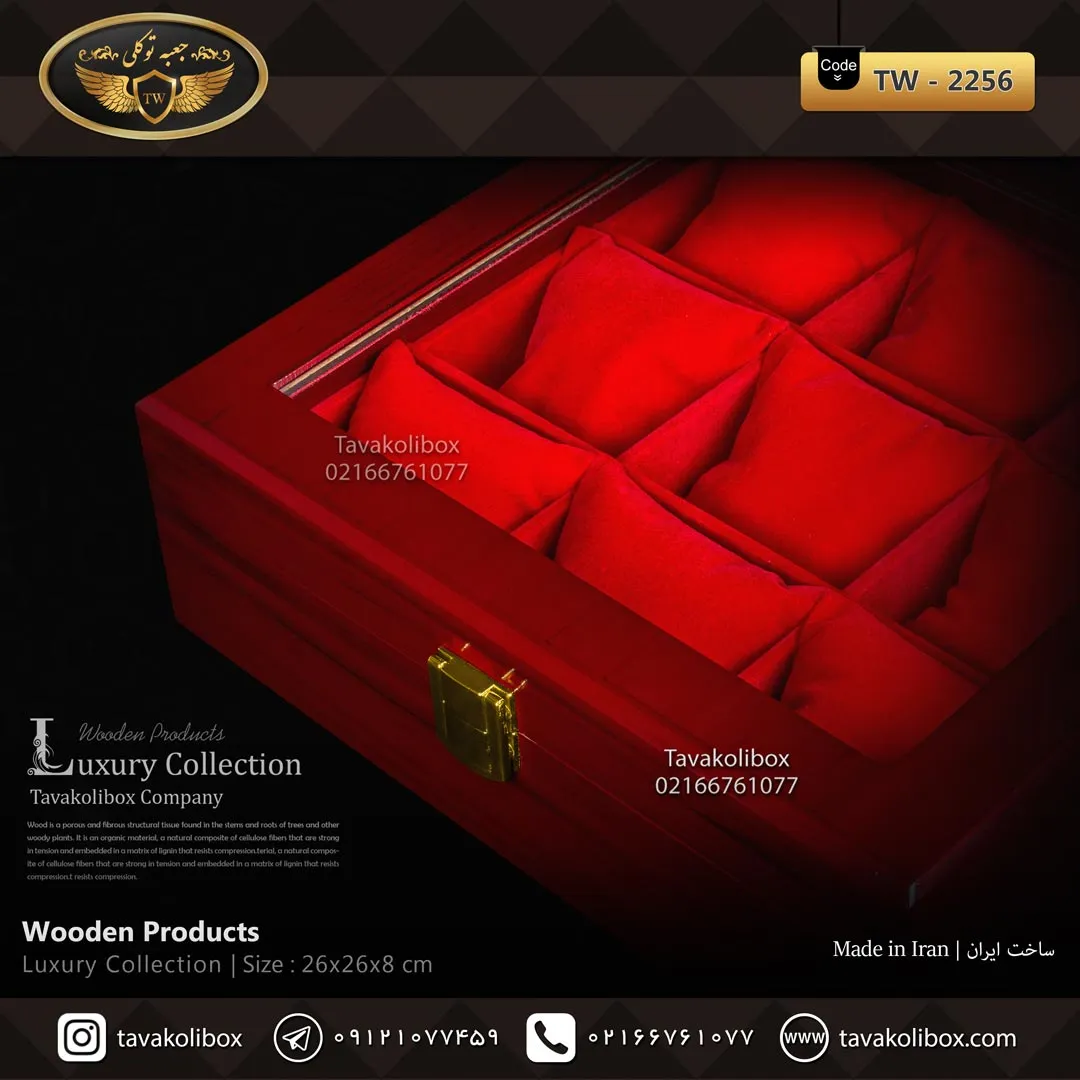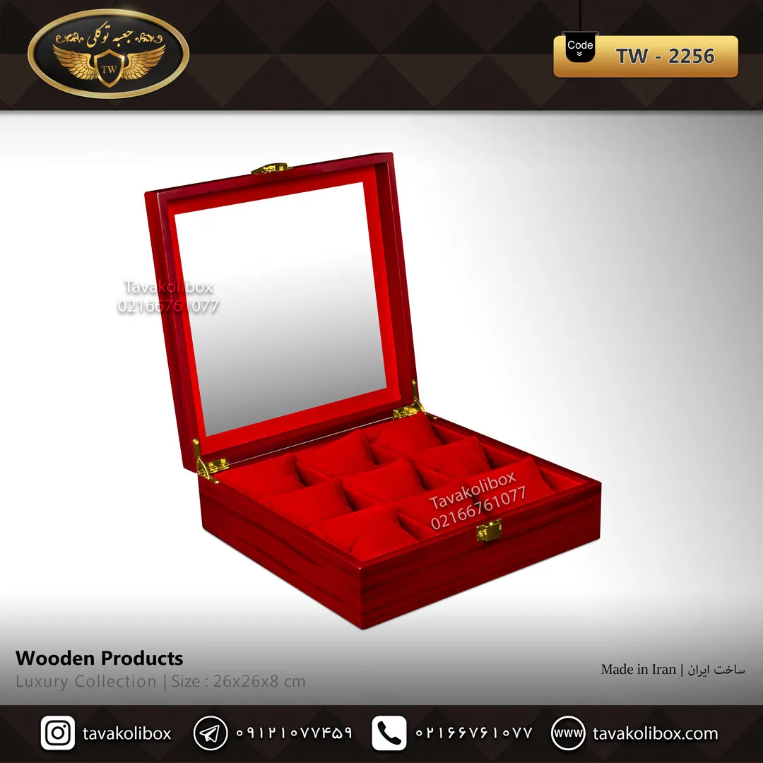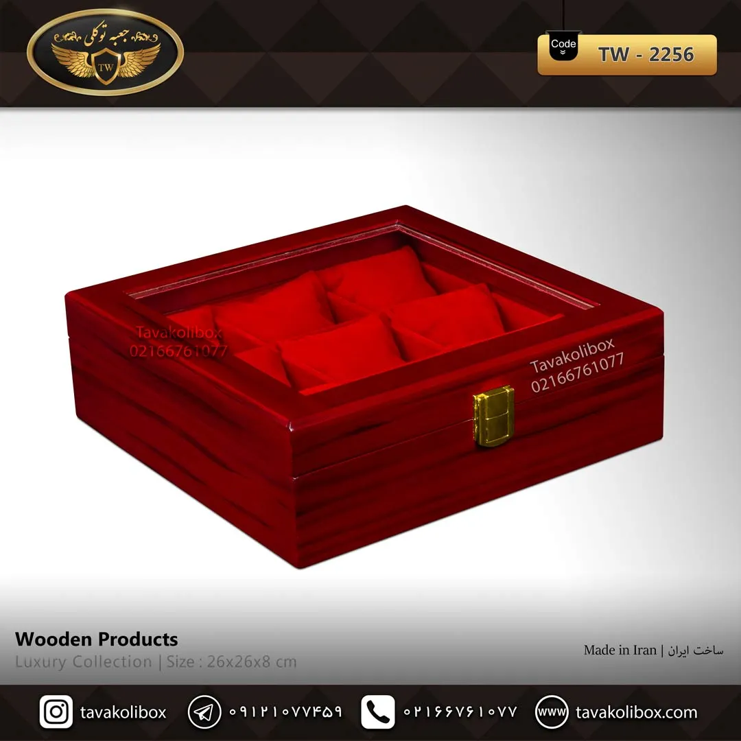 جعبه ساعت 9 خونه درب شیشه ای رنگ قرمز مدل : TW-2256