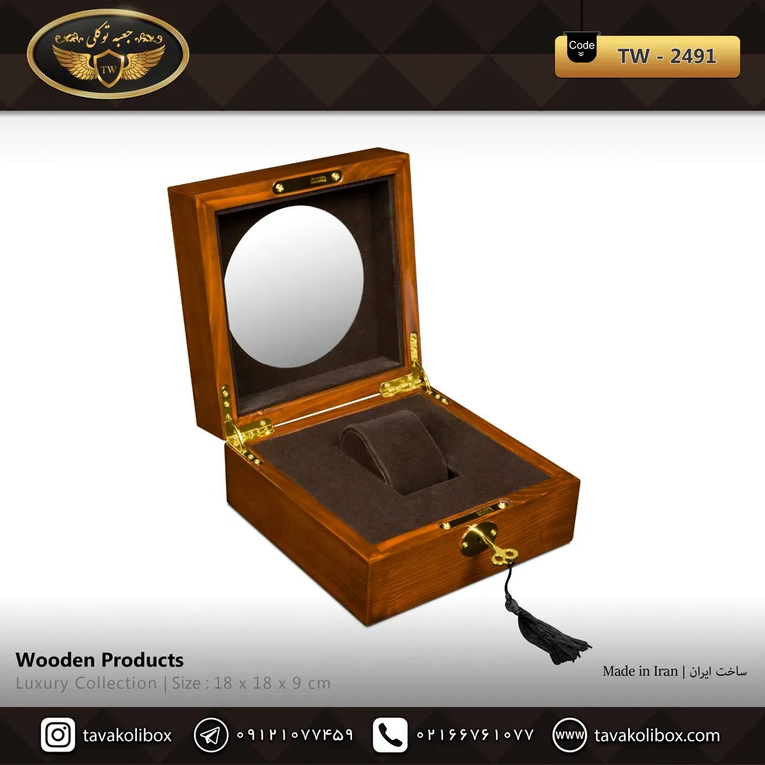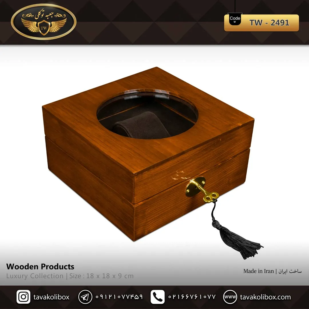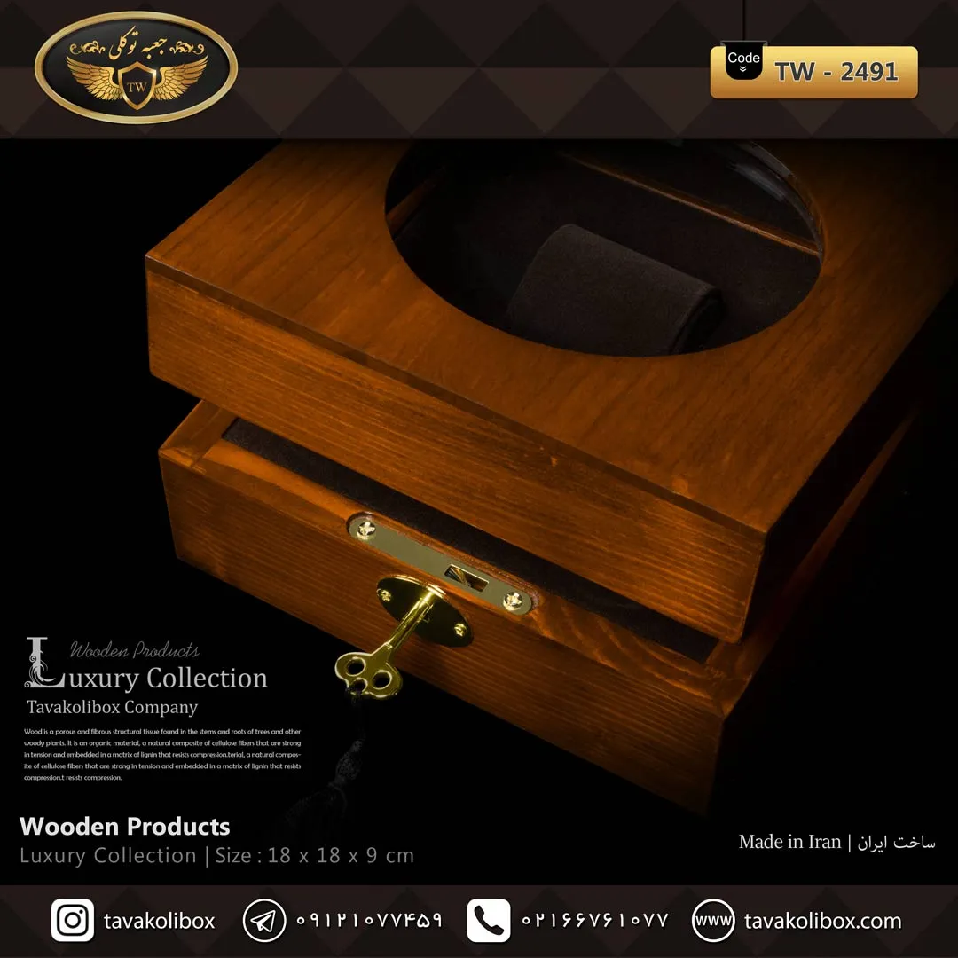 جعبه ساعت TW‑2491 ترکیبی از هنر چوب طبیعی و مهندسی ظریف در دنیای لوازم لوکس نگهداری ساعت است. بدنهی این جعبه از چوب طبیعی قهوهای ساخته شده که جلوهای گرم، اصیل و کلاسیک به فضا میبخشد.