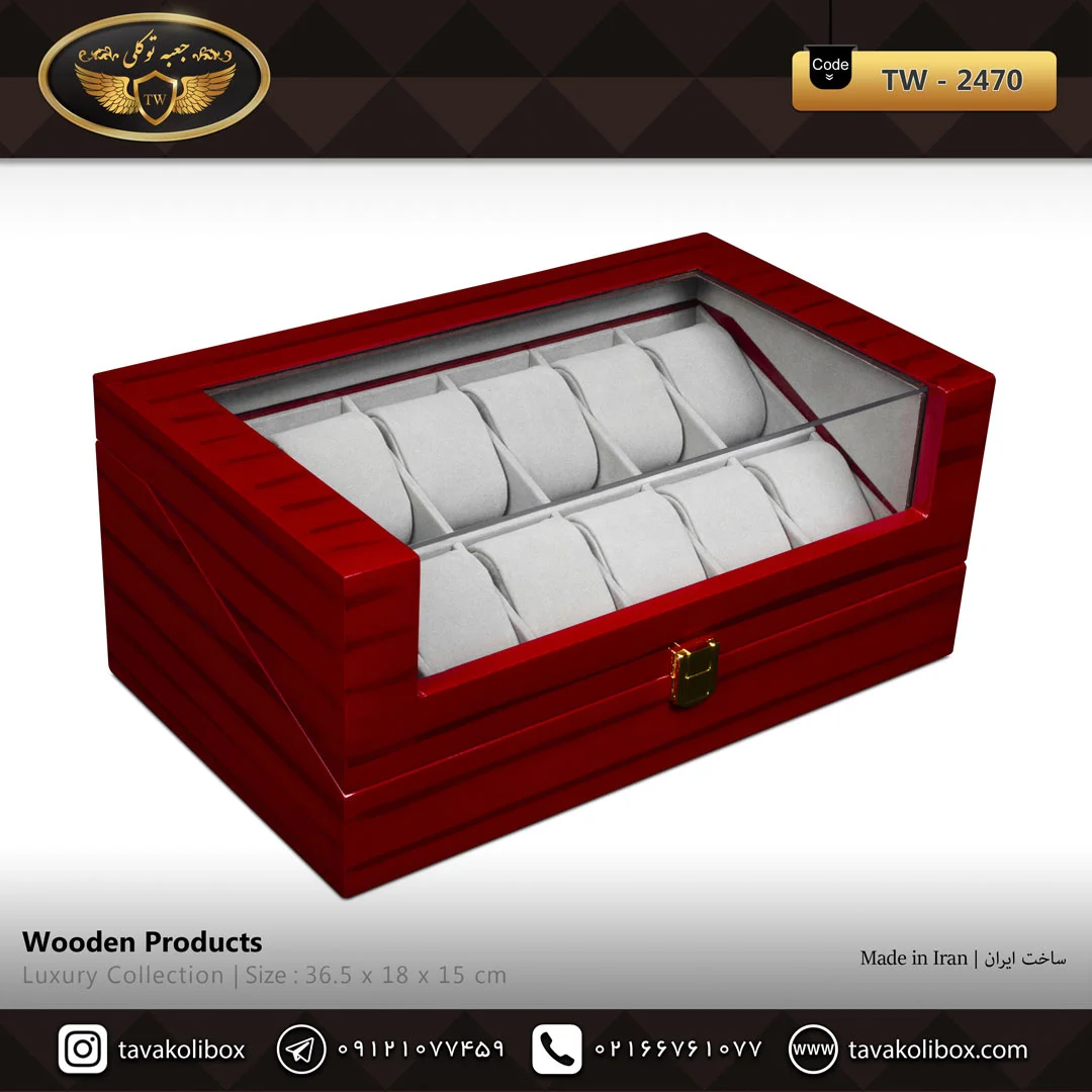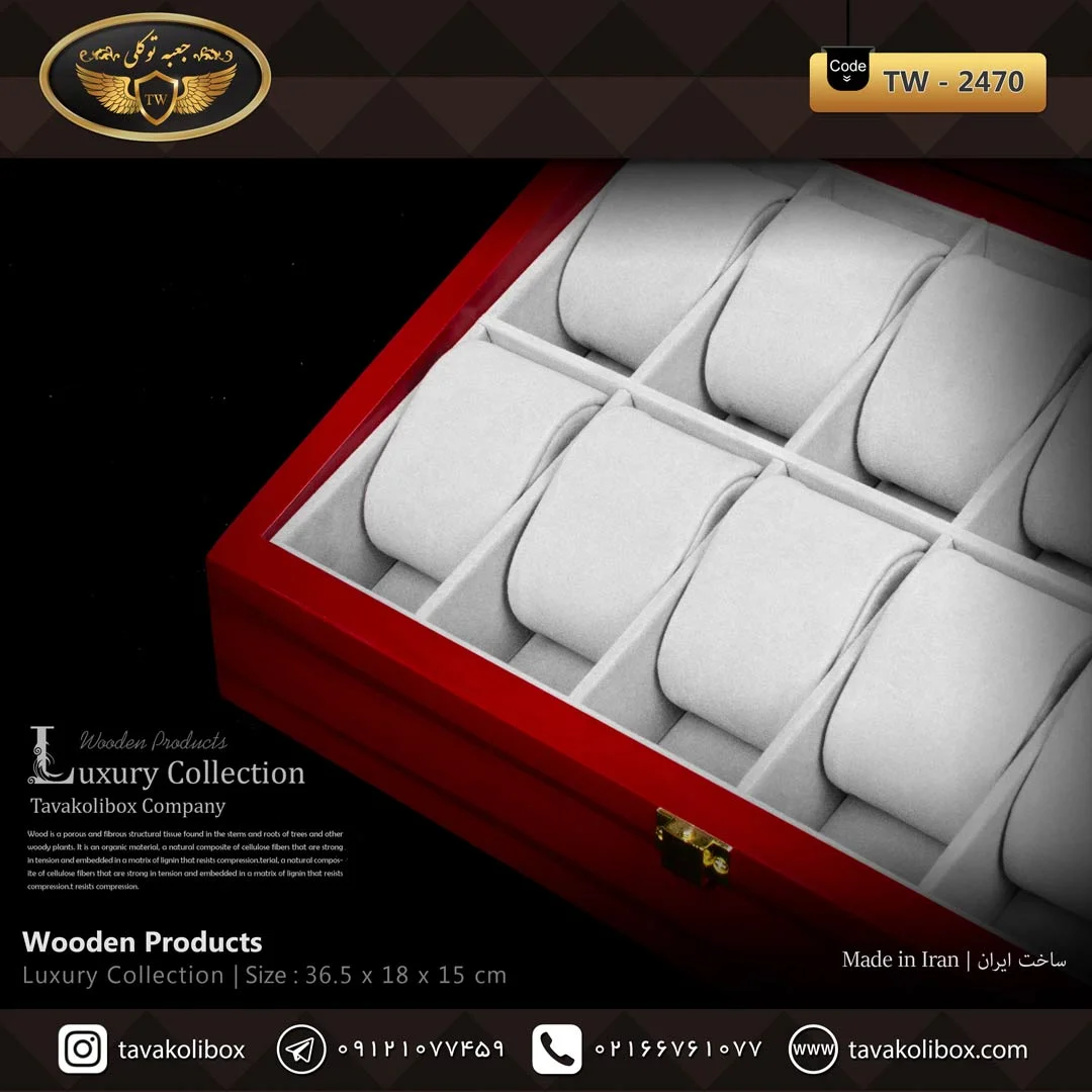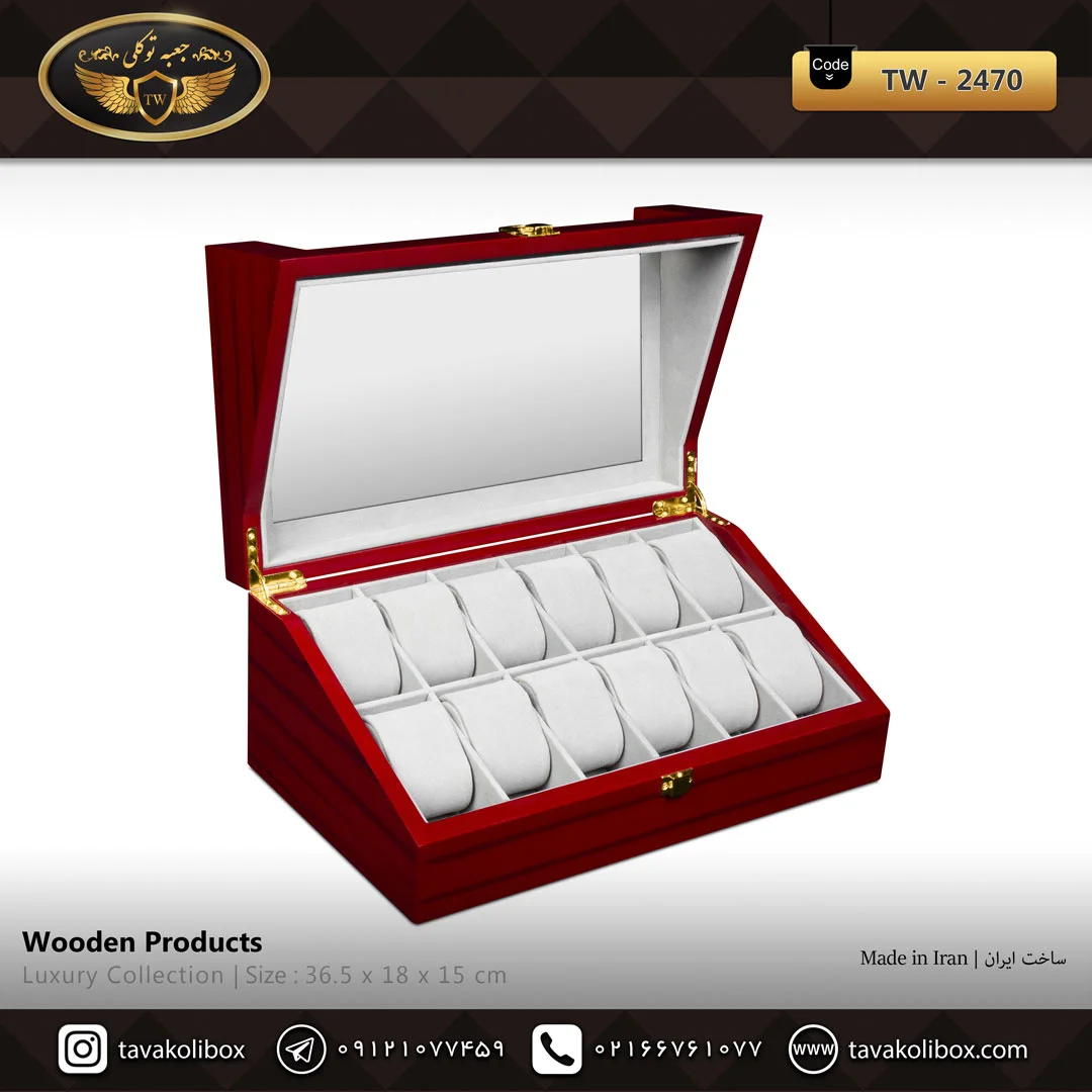 جعبه ساعت 12 خونه وایندر رنگ قرمز مدل : TW-2470 از متریال مرغوب ساخته شده است و برای نمایش و نگهداری انواع ساعت به کار میرود.