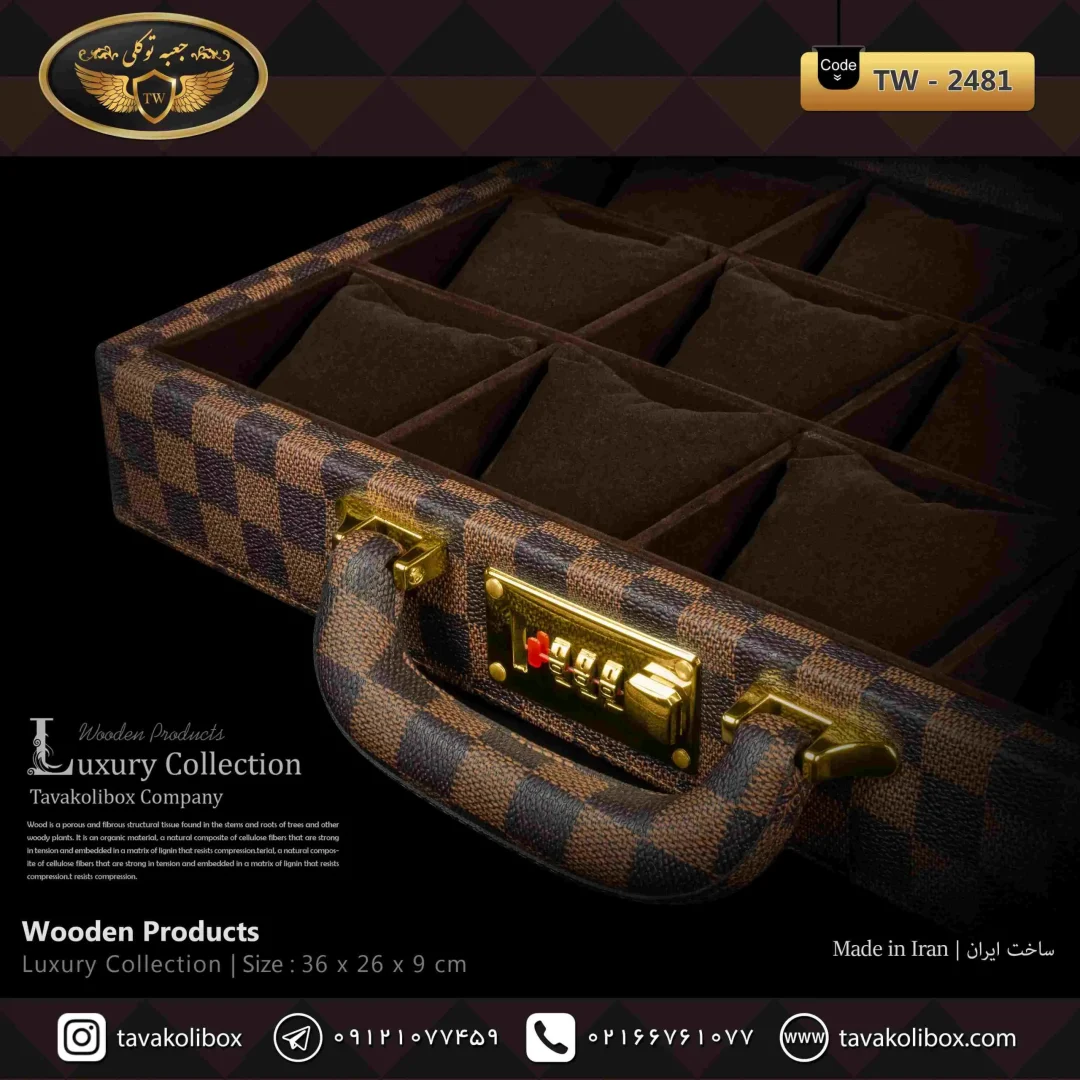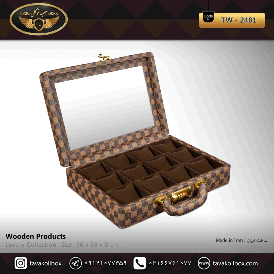 جعبه ساعت 12 خونه سوپرلاکچری چرم رنگ قهوه ای چارخونه مدل : TW-2481