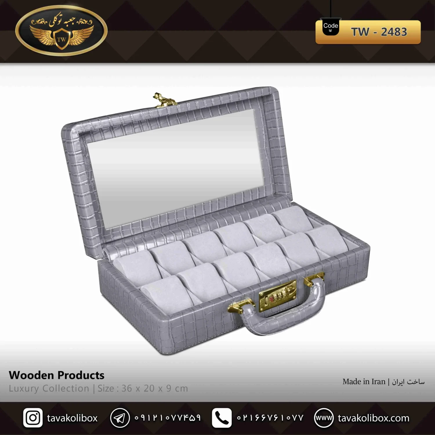 جعبه ساعت 12 خونه سوپرلاکچری چرم رنگ طوسی مدل : TW-2483