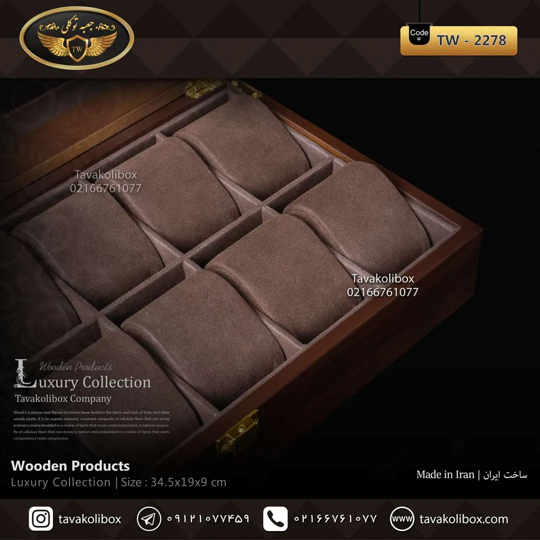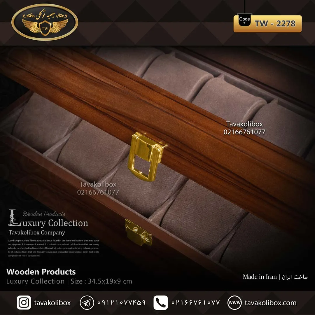 مدل TW‑2278 نماد نگهداری محترمانه، پایداری و سلیقه کلاسیک است. این جعبه بسیار کاربردی است و در عین حال جلوهای از اعتبار را به میز یا کمد شما اضافه میکند