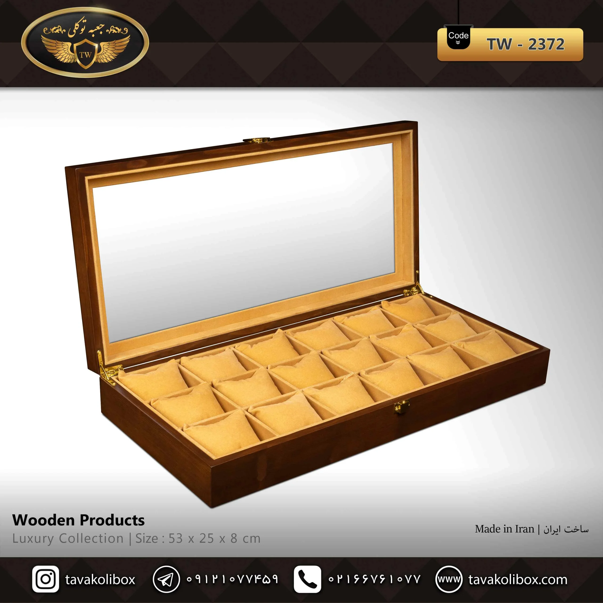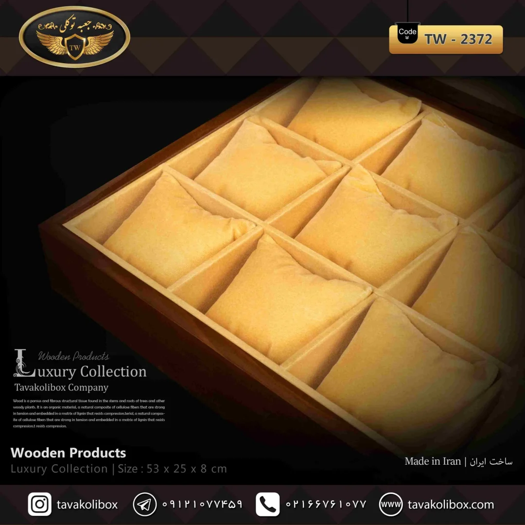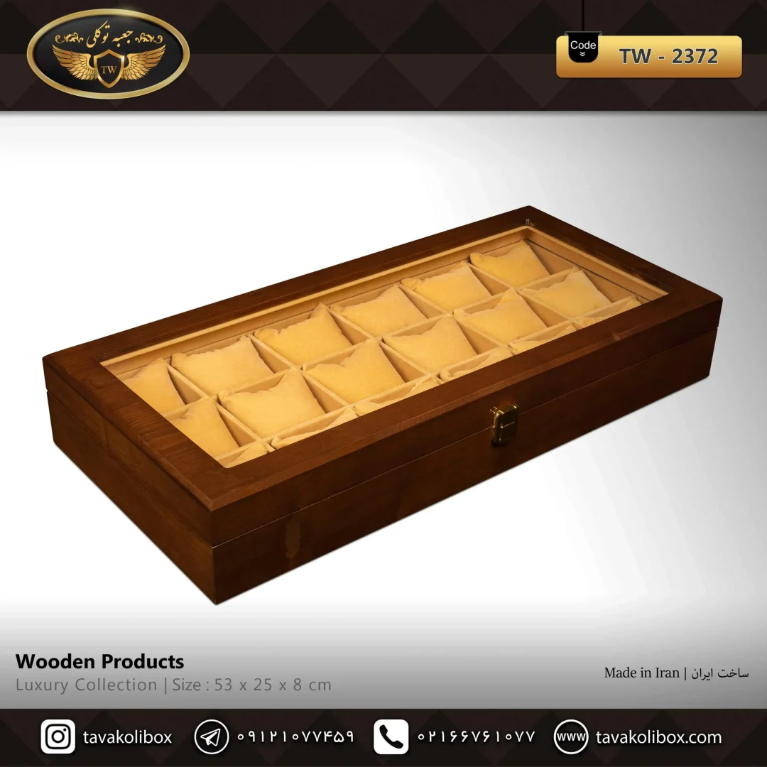 جعبه ساعت 18 خونه رنگ قهوه ای مدل : TW-2372