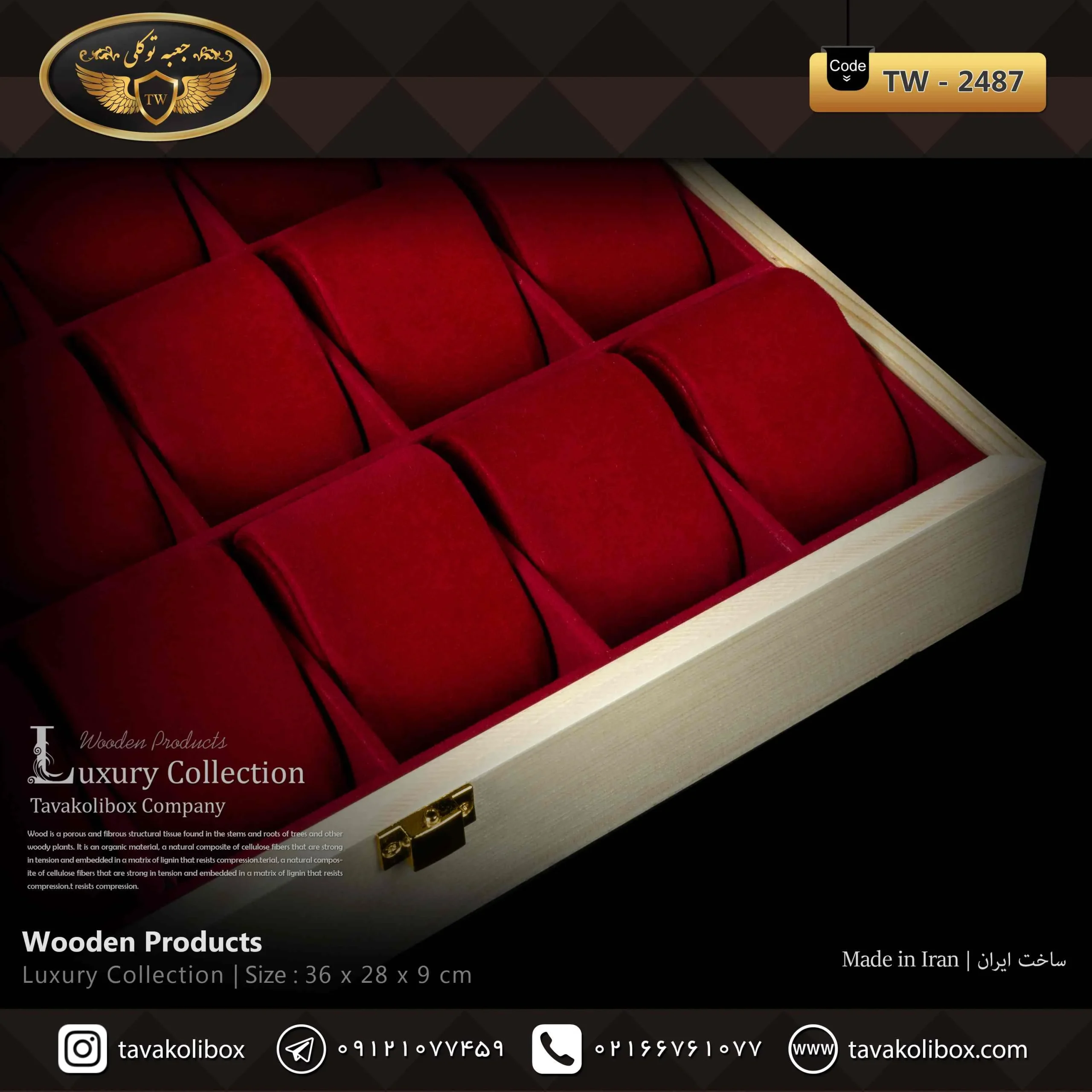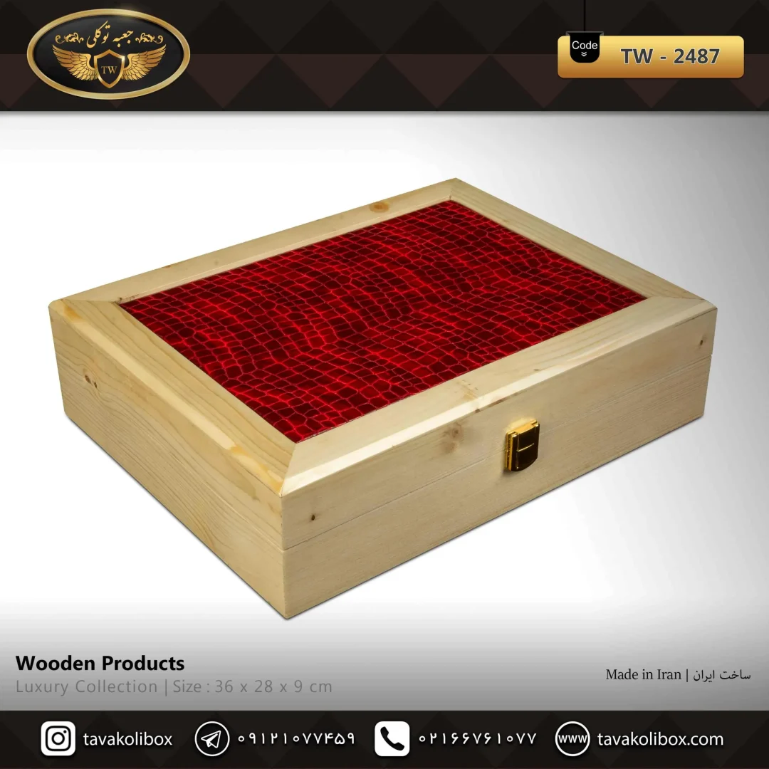 جعبه ساعت 18 خونه لوکس چوب طبیعی رنگ کرم مدل : TW-2487