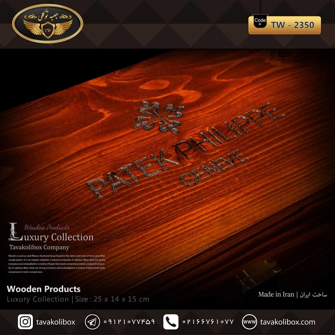 جعبه ساعت 2 خونه چوب طبیعی رنگ قهوه ای مدل : TW-2350 از متریال مرغوب ساخته شده است و برای نمایش و نگهداری انواع ساعت به کار میرود.