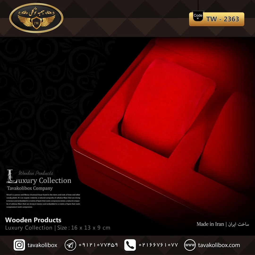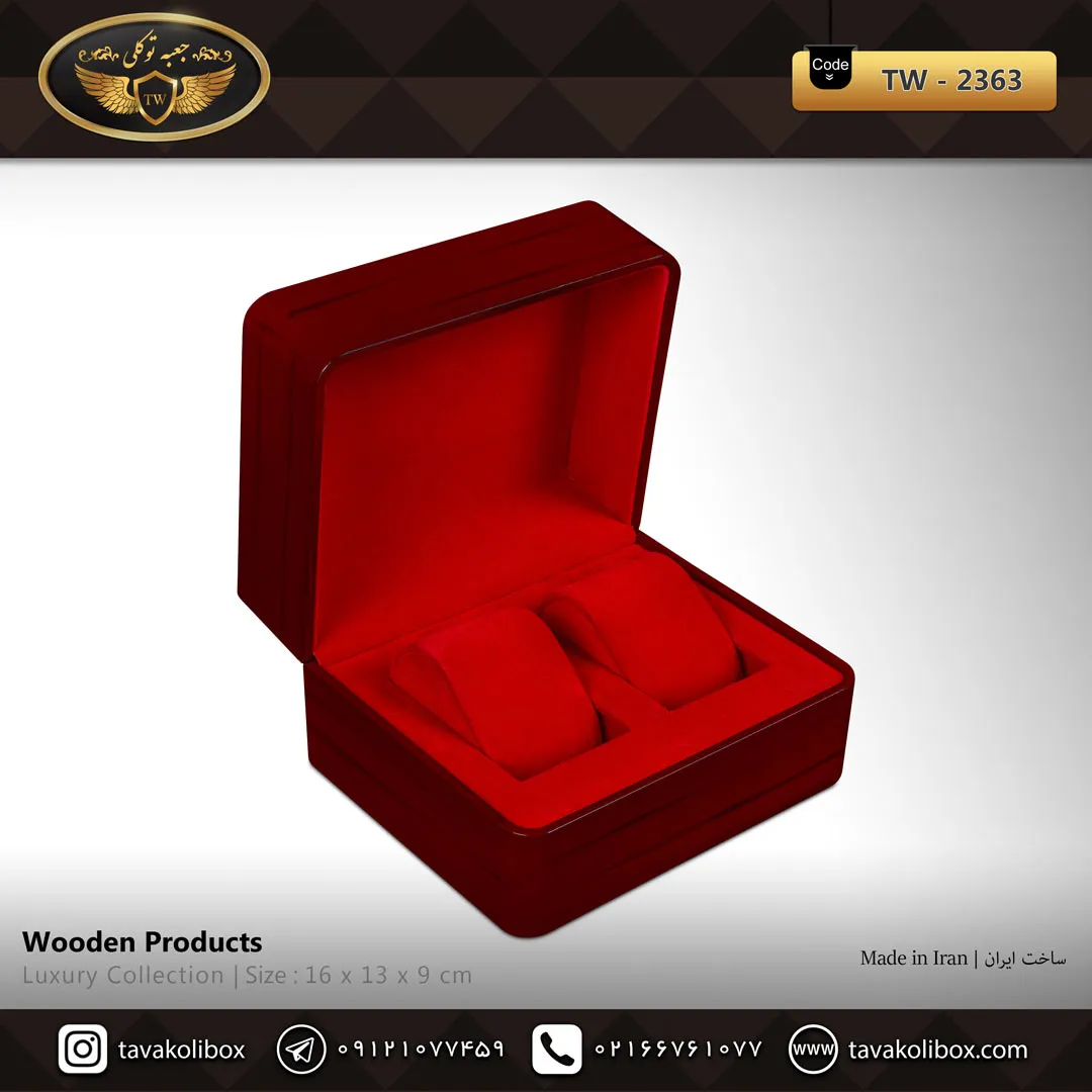 جعبه ساعت 2 خونه درب دار رنگ زرشکی مدل : TW-2363