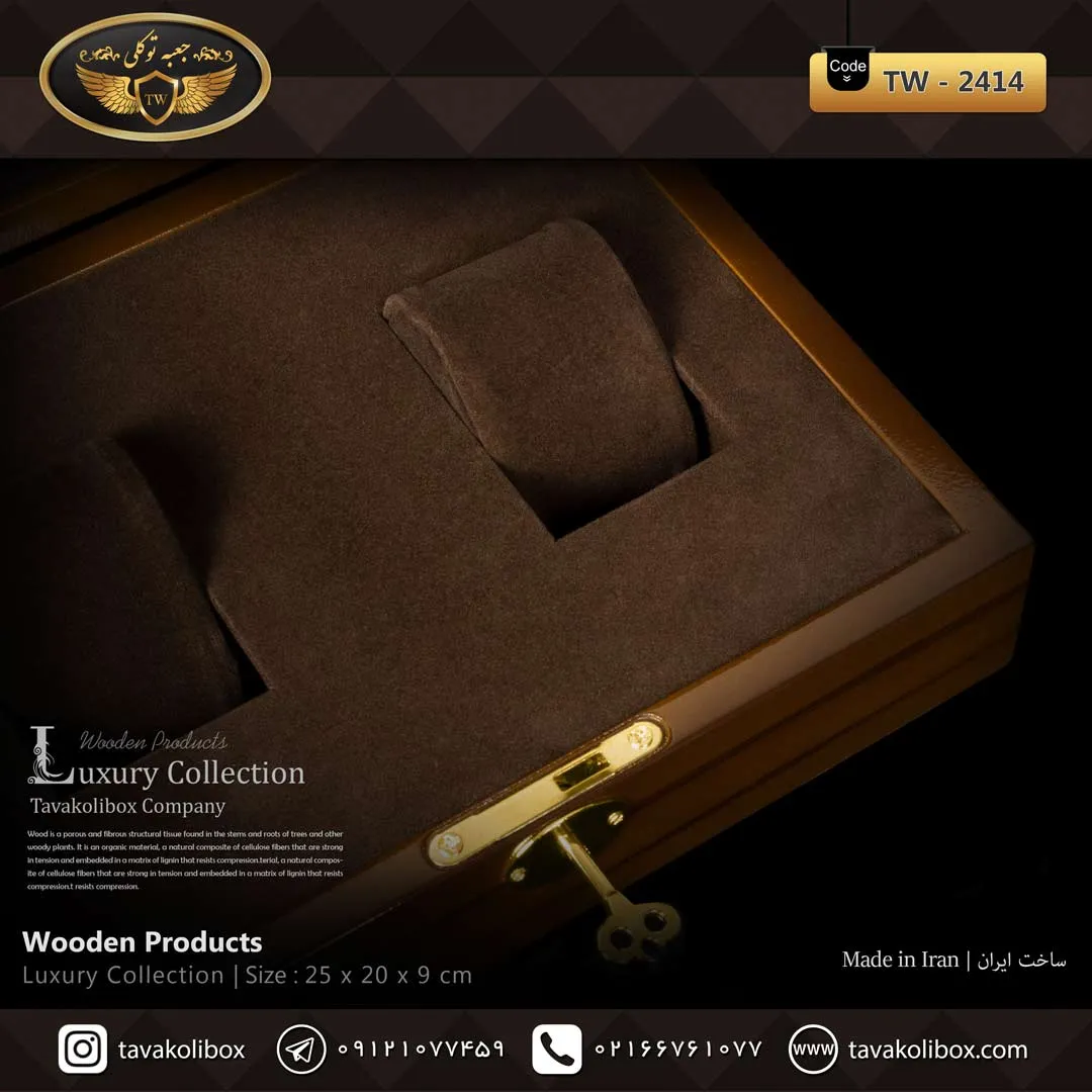 جعبه ساعت 2 خونه لوکس رنگ قهوه ای مدل : TW-2414 از متریال مرغوب ساخته شده است و برای نمایش و نگهداری انواع ساعت به کار میرود.