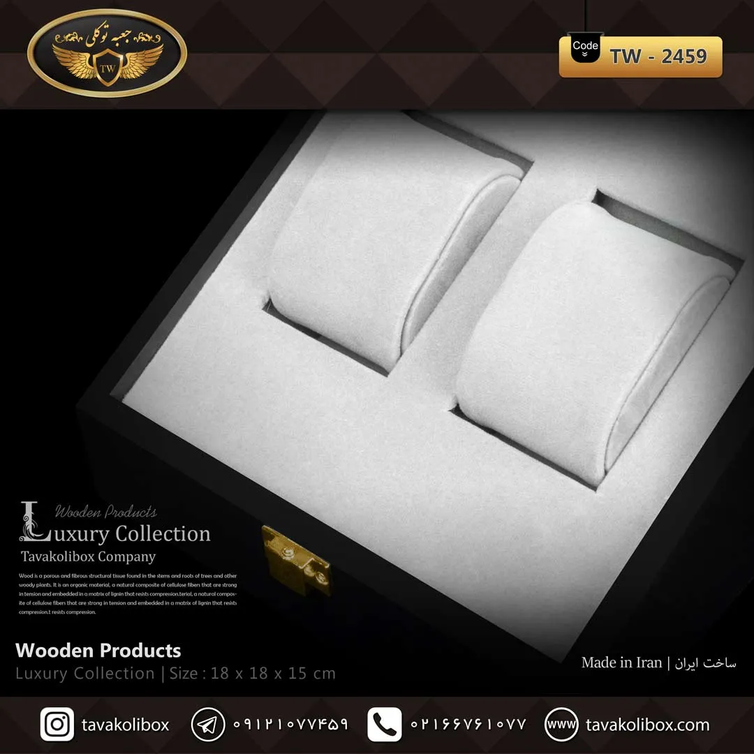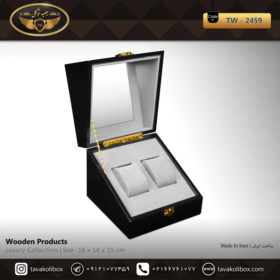 جعبه ساعت 2 خونه لوکس طرح وایندر رنگ مشکی مدل : TW-2459 از متریال مرغوب ساخته شده است و برای نمایش و نگهداری انواع ساعت به کار میرود.