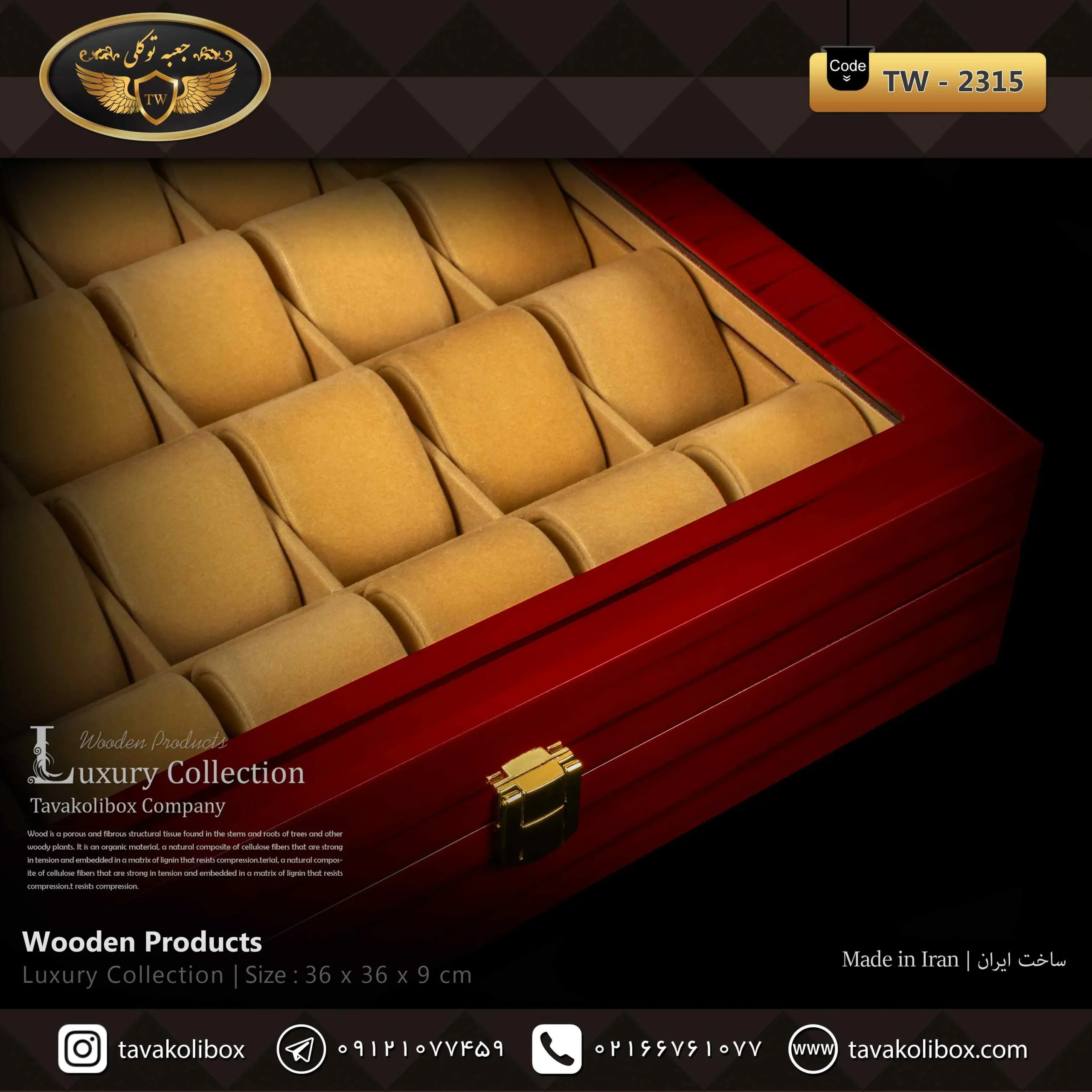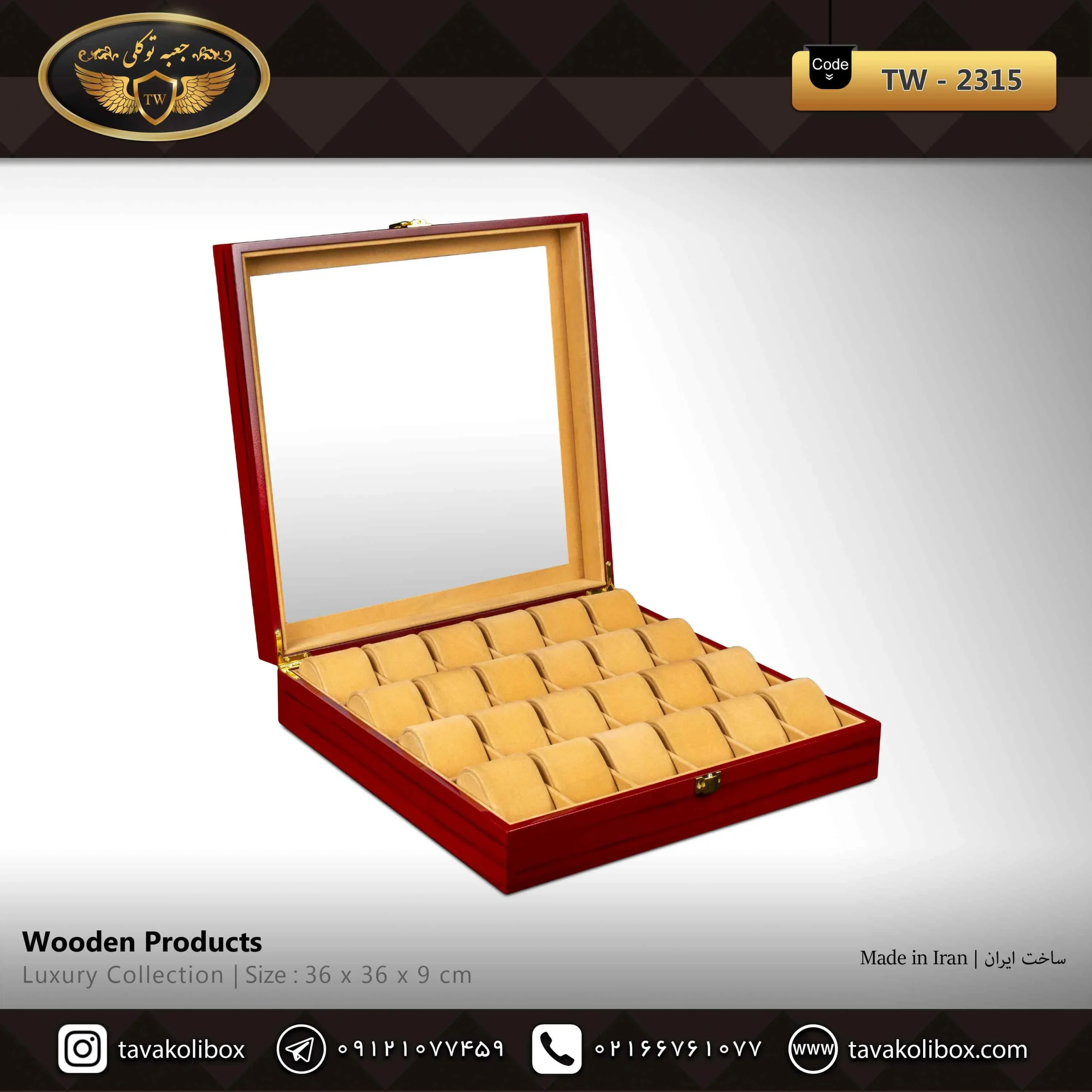 جعبه ساعت 24 خونه لوکس درب دار رنگ قرمز مدل : TW-2315 از متریال مرغوب ساخته شده است و برای نمایش و نگهداری انواع ساعت به کار میرود.