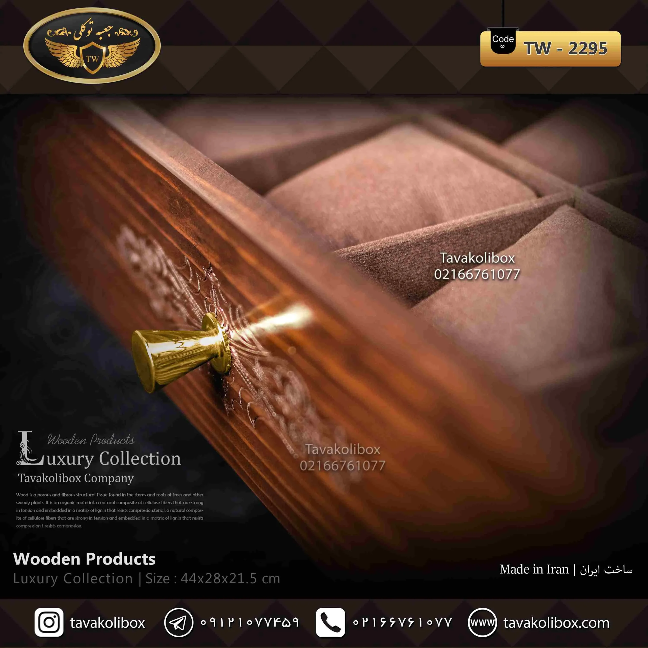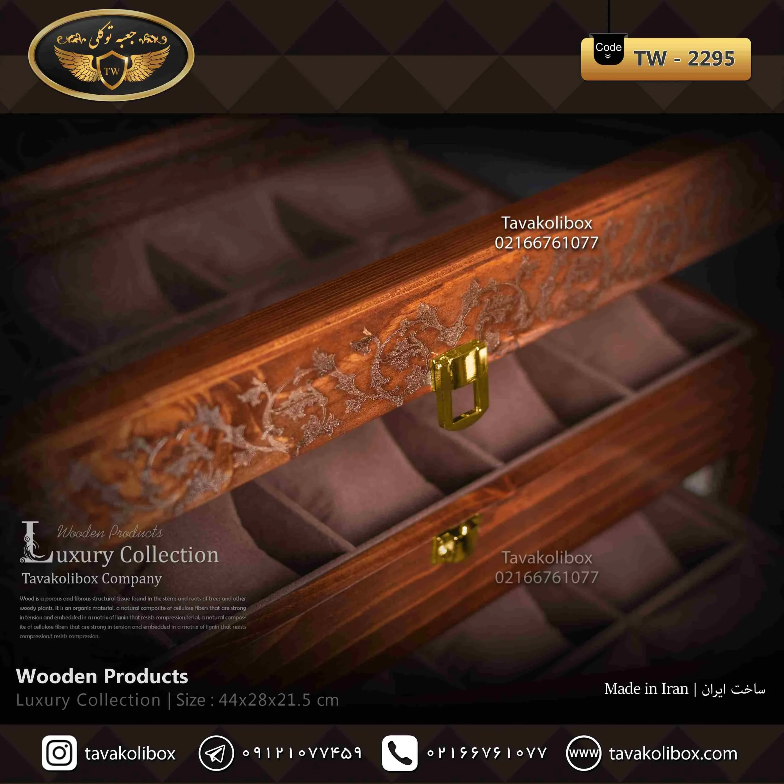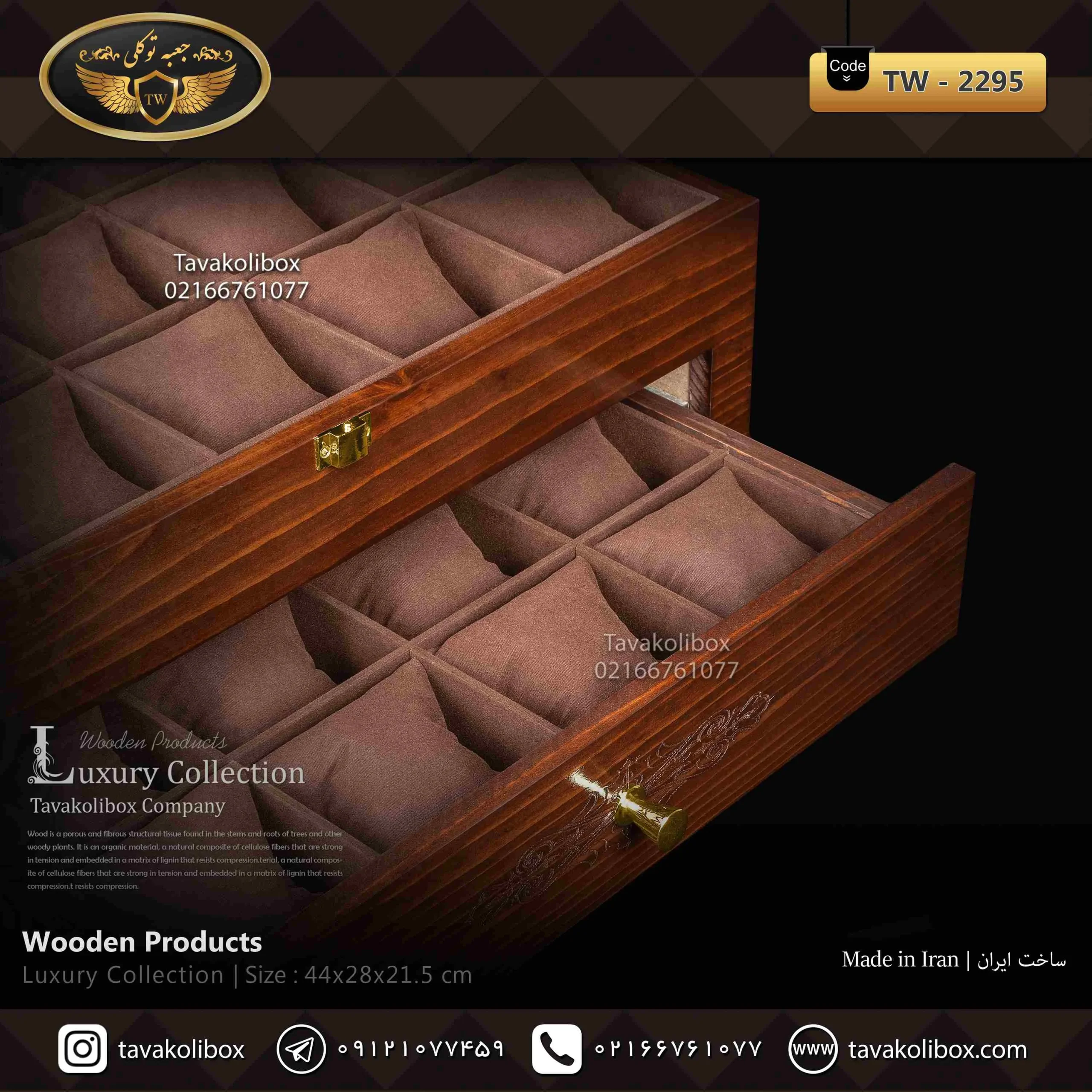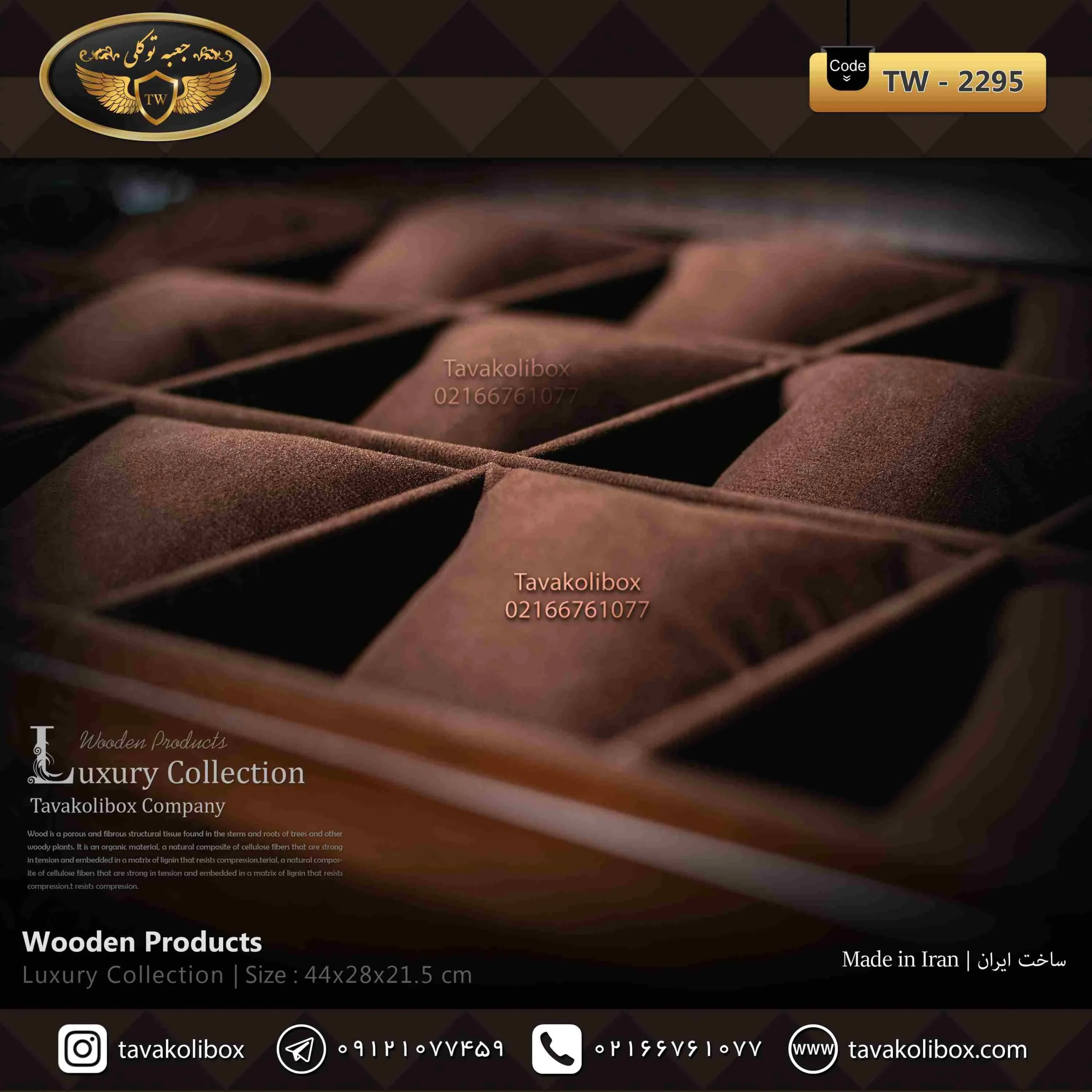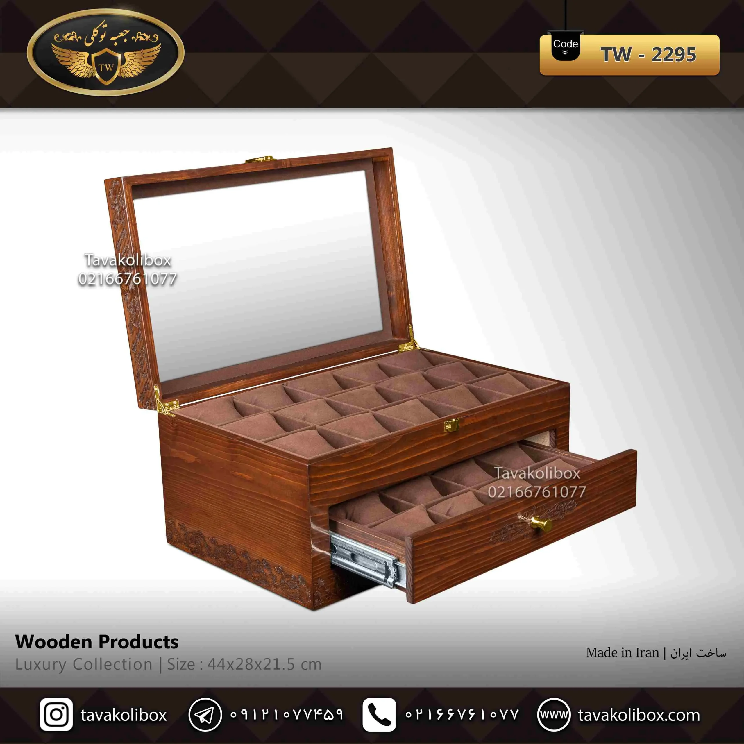 جعبه ساعت 27 خونه کشودار بالشتک معمولی چوب طبیعی رنگ قهوه ای مدل : TW-2295