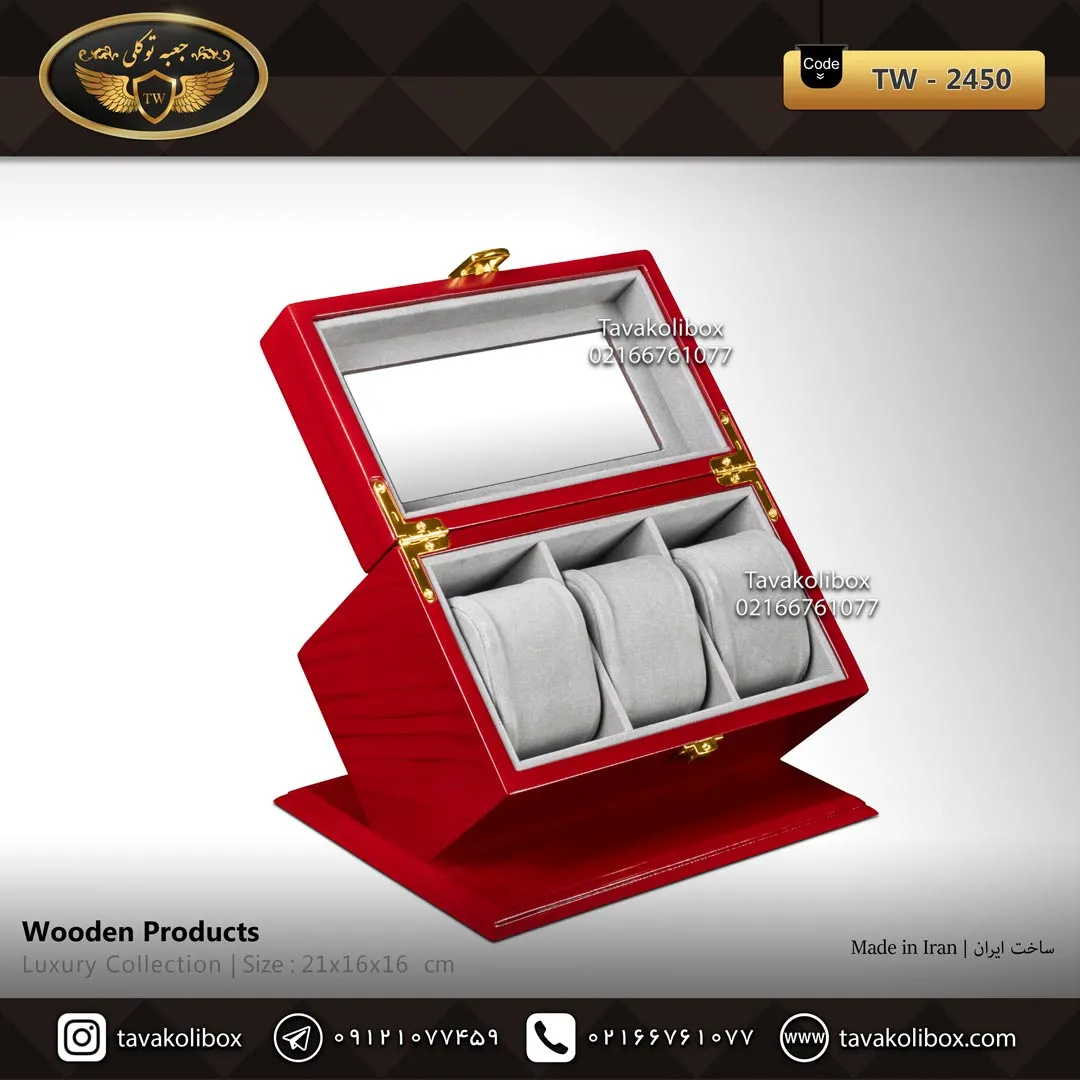 جعبه ساعت 3 خونه اوریب رنگ قرمز مدل : TW-2450