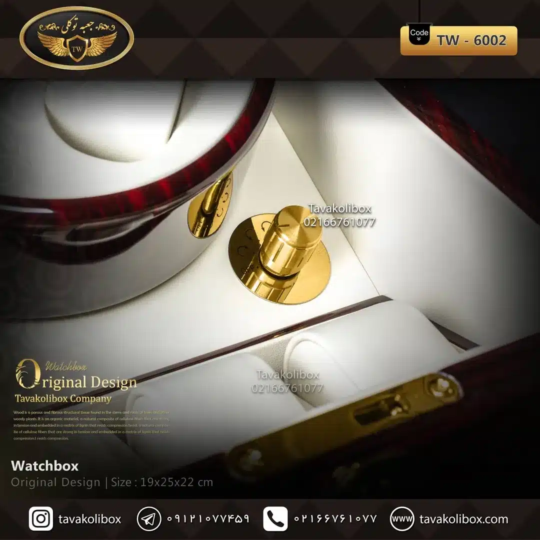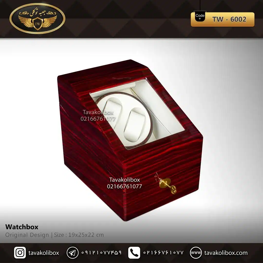 جعبه ساعت 3 خونه وایندر 1 موتوره رنگ آلبالویی-سفید مدل : TW-6002 از متریال مرغوب ساخته شده است و برای نمایش و نگهداری انواع ساعت به کار میرود.