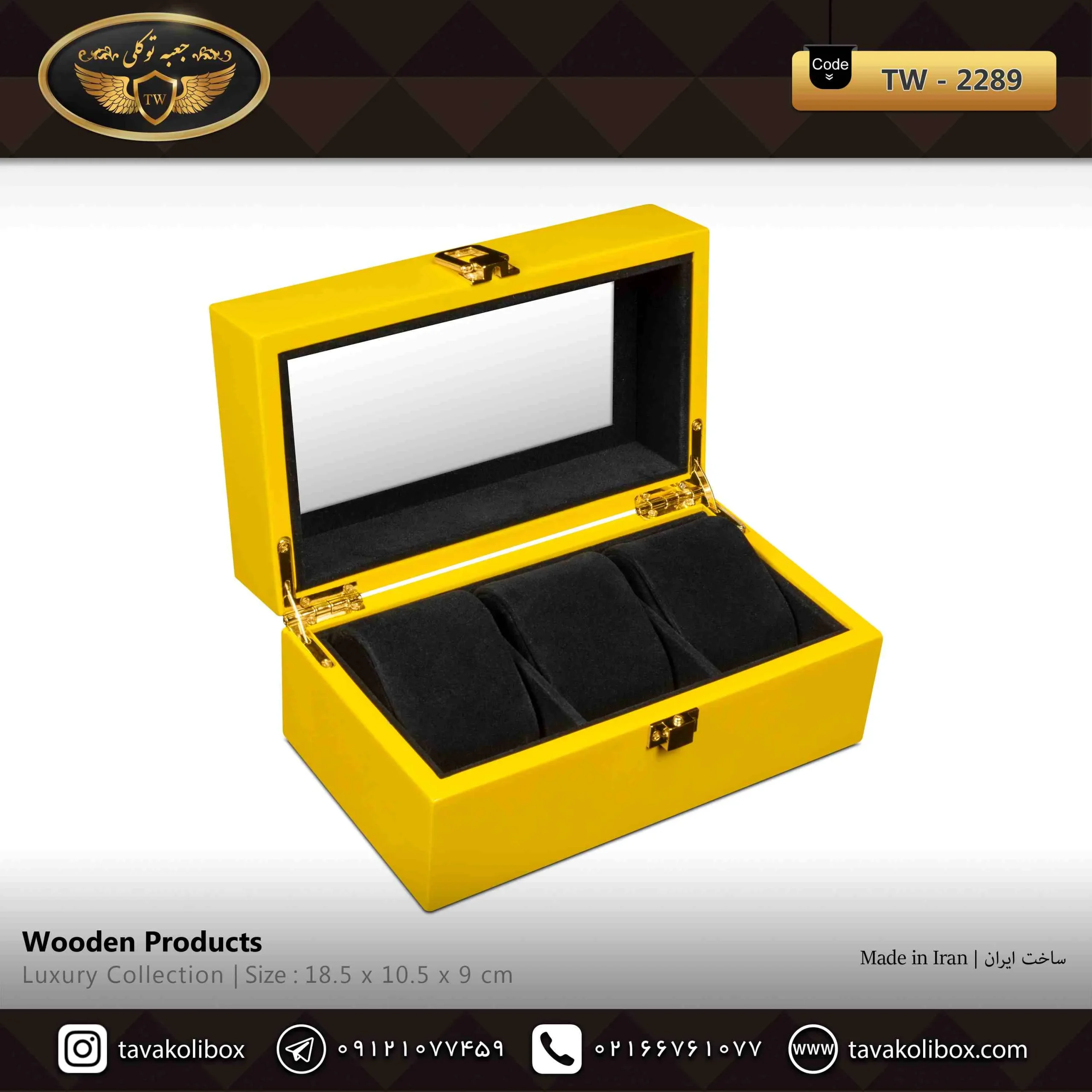 جعبه ساعت 3 خونه رنگ زرد مدل : TW-2289: از متریال مرغوب ساخته شده است و برای نمایش و نگهداری انواع ساعت به کار میرود.