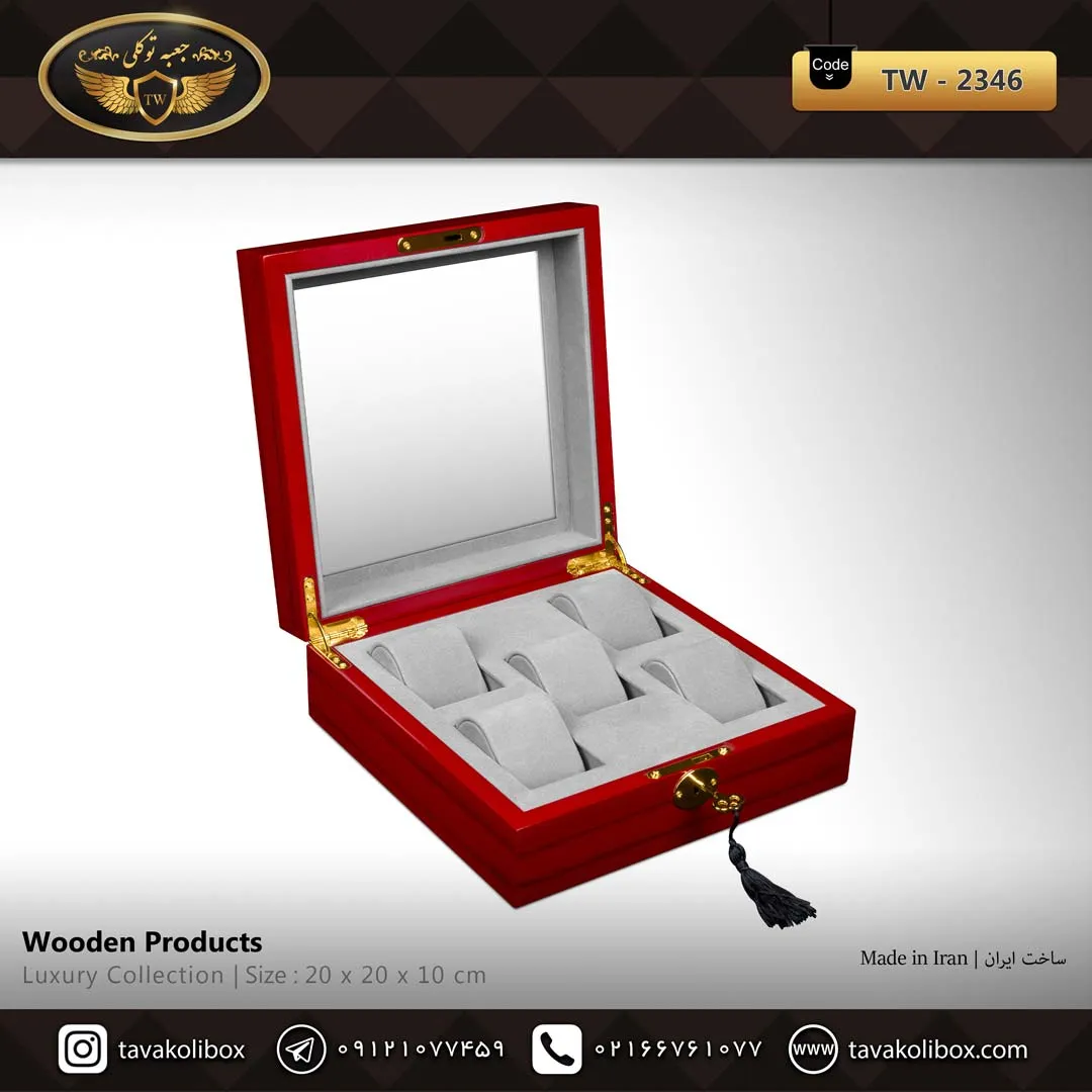 جعبه ساعت 5 خونه لوکس بالشتک لوکس رنگ قرمز مدل : TW-2346