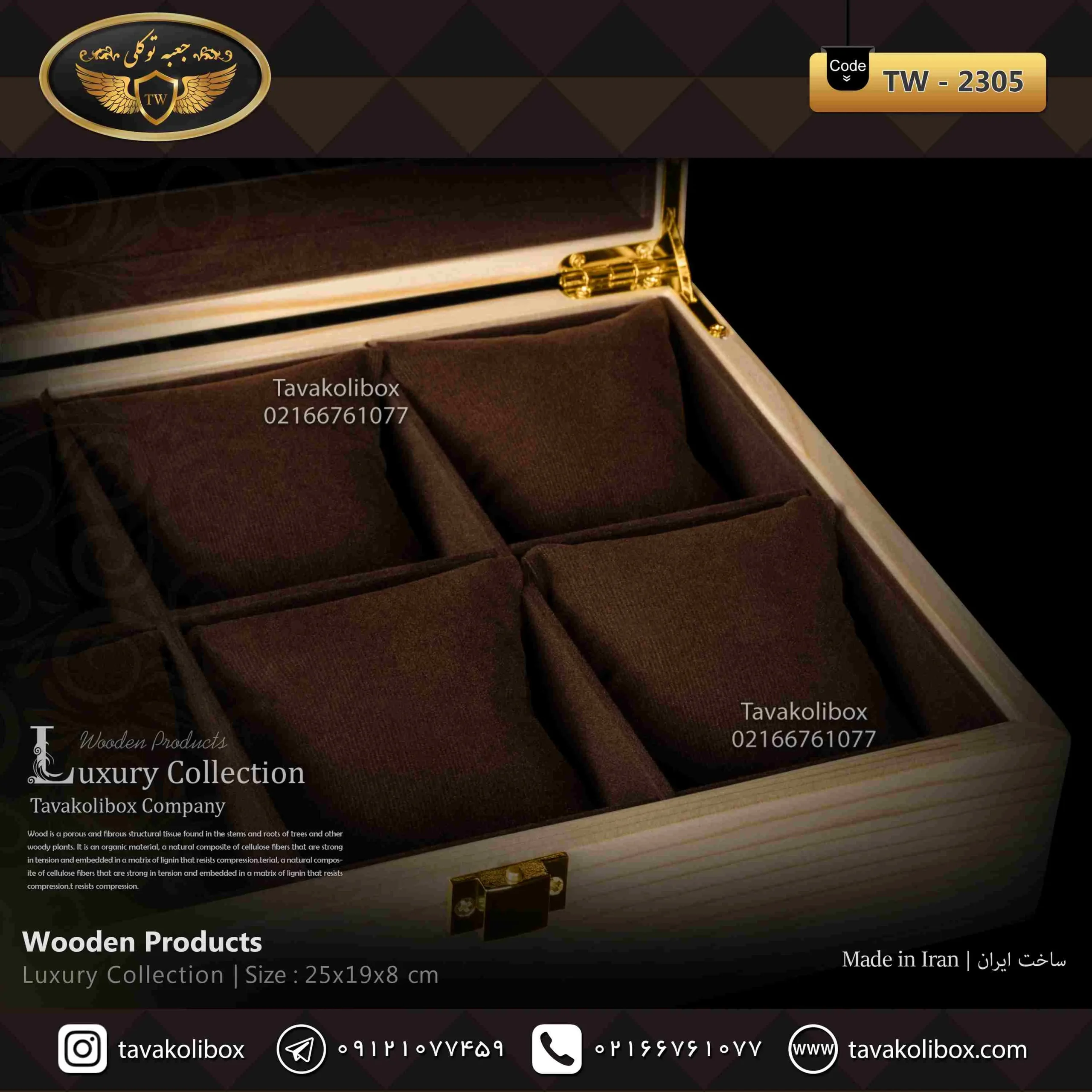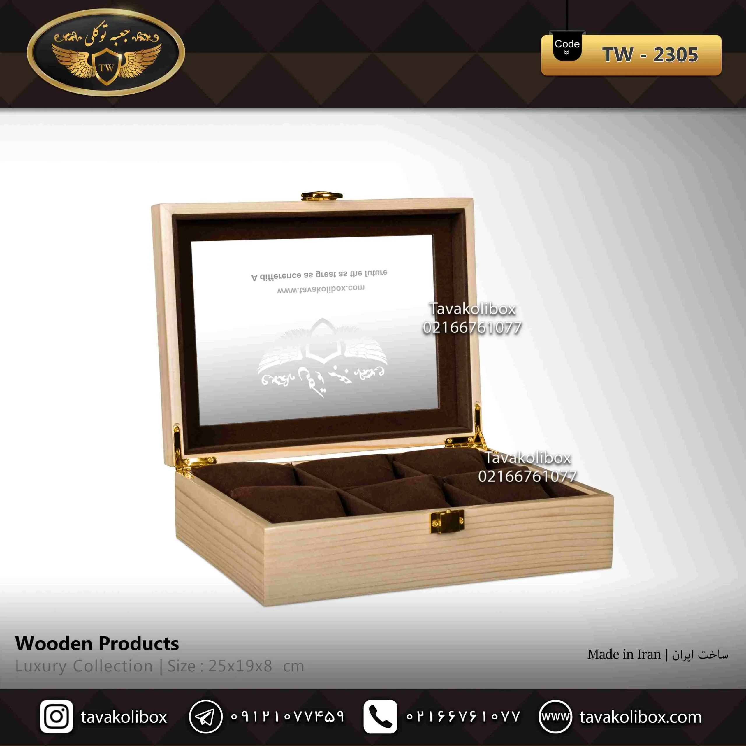 جعبه ساعت 6 خونه چوب طبیعی رنگ کرم مدل : TW-2305 از متریال مرغوب ساخته شده است و برای نمایش و نگهداری انواع ساعت به کار میرود.