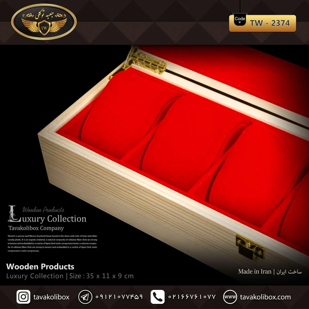 جعبه ساعت 6 خونه چوب طبیعی رنگ قهوه ای روشن مدل : TW-2374