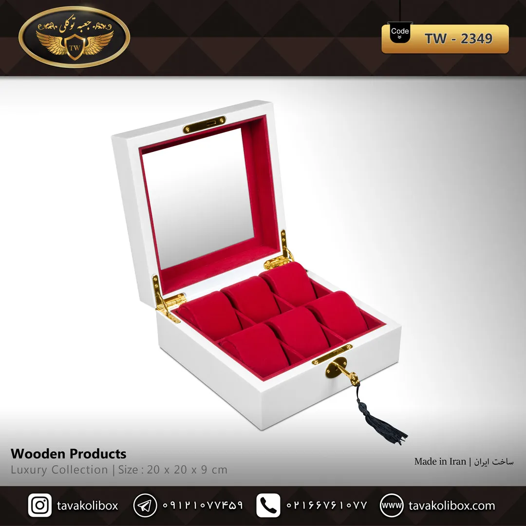 جعبه ساعت 6 خونه کلیددار رنگ سفید-قرمز مدل : TW-2349