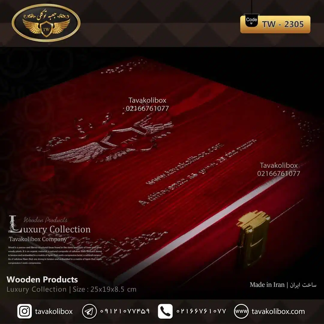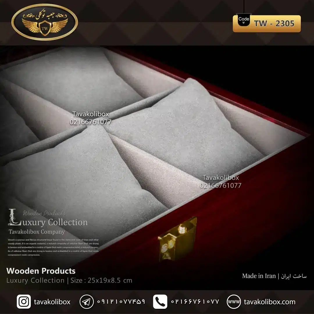 جعبه ساعت 6 خونه درب چوبی چوب طبیعی رنگ قرمز مدل : TW-2305